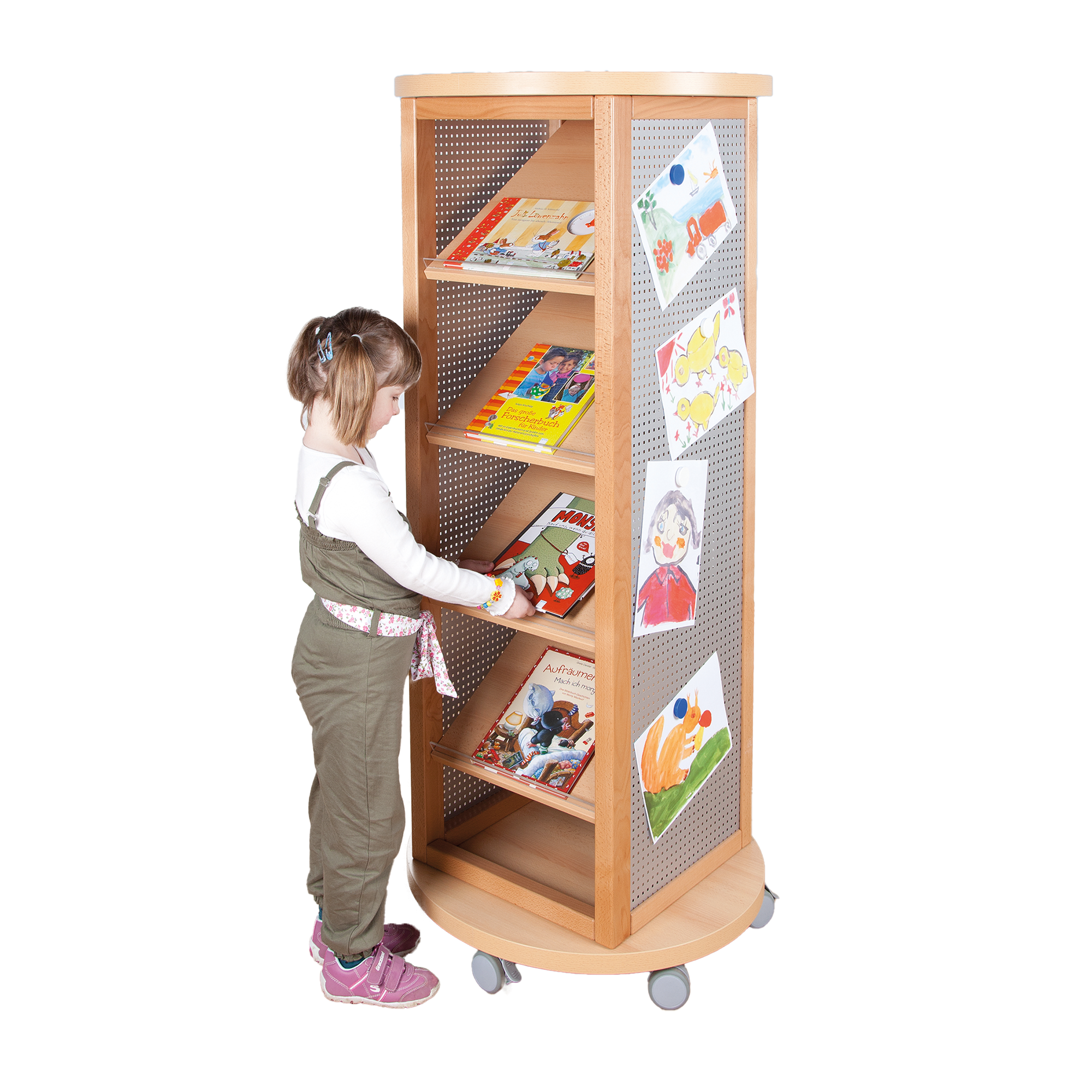 Quadratische Litfaßsäule mit Stollenrahmen, dreiseitiger Lochblechfüllung und 4 Schrägböden für Infomaterial oder Bücher. Für das Lochblech unserer Infosäulen stehen verschieden RAL-Farben zur Auswahl. Das Lochblech ist in einen massiven Stollenrahmen aus Buche Massivholz eingefasst. Die runden Deckel- und Bodenplatten in Buche-Optik, damit dekorgleich zu den Stollenbauteilen, haben einen Durchmesser von 700 mm und sind 38 mm stark. Durch 5 große Rollen, davon 2 feststellbar, lässt sich die Info-Säule leicht verfahren.