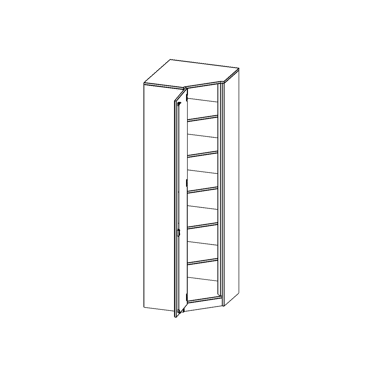 Alle Innenneckschränke werden aus melaminharzbeschichteter E1-Feinspanplatte gefertigt, die FSC zertifiziert und formaldehydfrei sind. Als Kanten verwenden wir besonders robuste 2 mm starke ABS Kanten, die unter hoher Temperatur fest verleimt werden. Bitte wählen Sie Ihr Wunschdekor aus unserer Dekorpalette aus. Die Einlegeböden sind im Raster von 32 mm verstellbar. Unsere hochwertigen Bodenträger verfügen über einen "Ausziehstop", so wird verhindert, dass Böden mit Inhalt darauf aus dem Regal oder Schrank rutschen können.