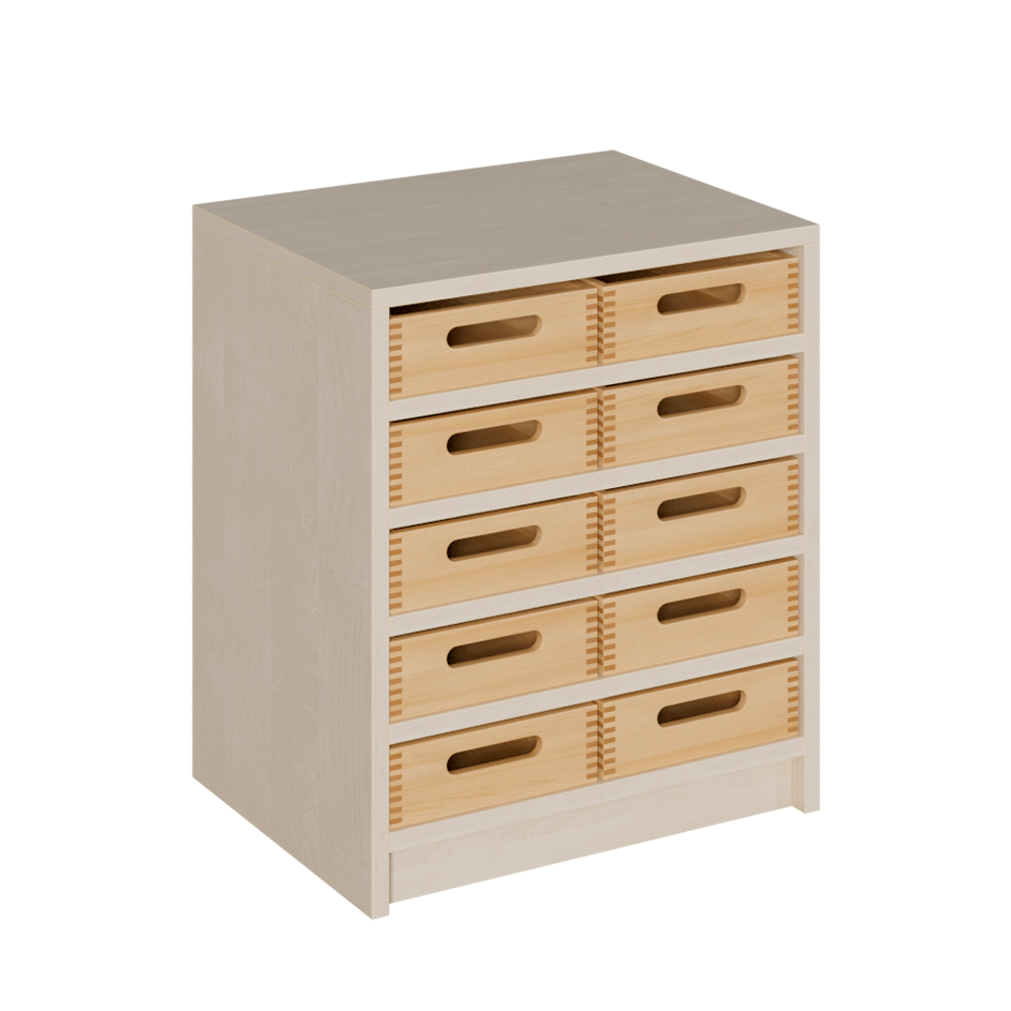 Das praktische Materialkastenregal mit Massivholz-Materialkästen! Die ideale Lösung für die Aufbewahrung und Organisation von Materialien.