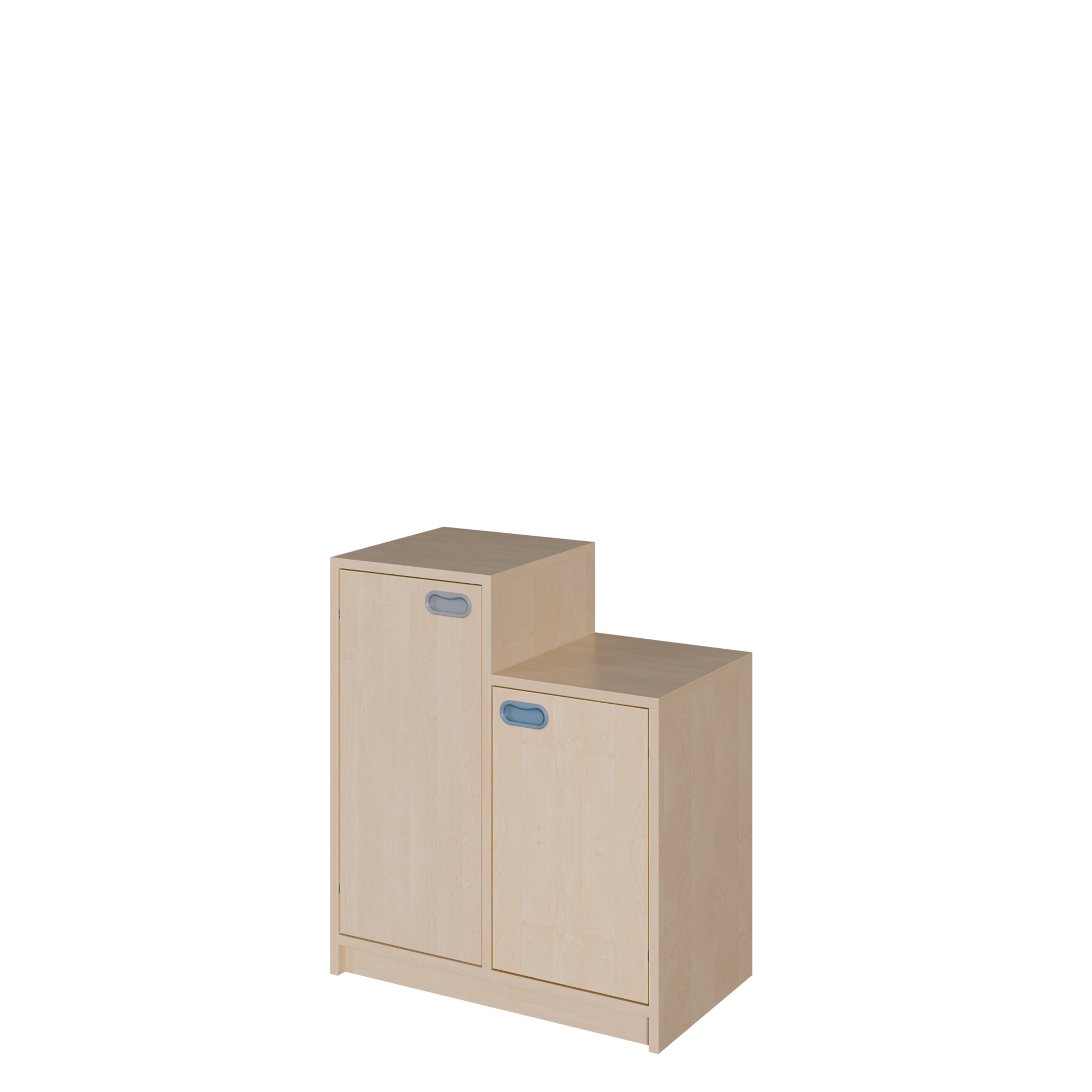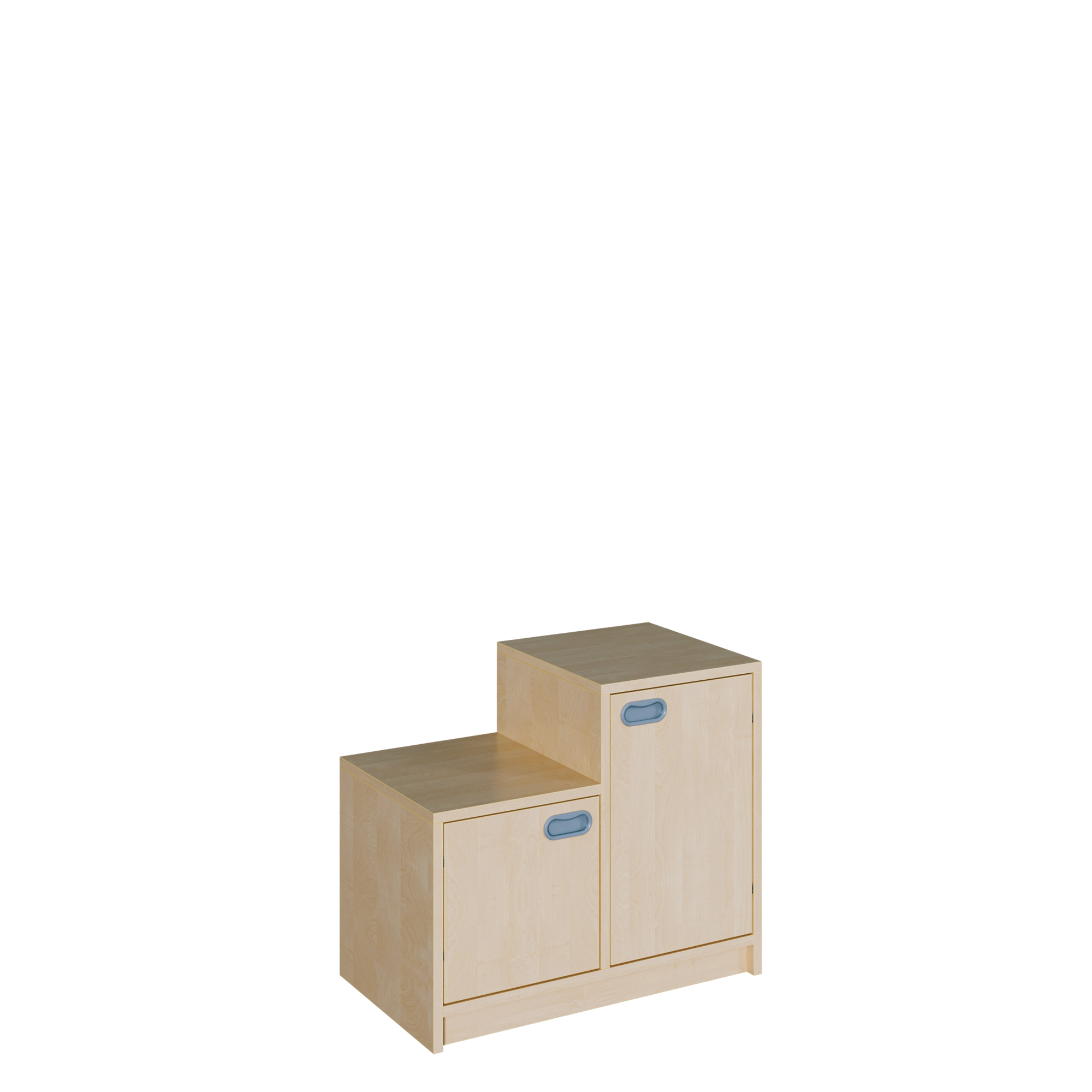 Die Serie "SideStep" bietet ein variantenreiches Sortiment von stufenförmigen Regalen und Schränken. Diese können komplett oder einzeln mit Türen, als Regal oder mit Boxen ausgewählt werden und sind jeweils in einem Höhenraster verfügbar. Die stufenförmige Kontur dieser bietet die Möglichkeit zu interessanten Stellkombinationen und die Möglichkeit, den Raum unter Dachschrägen und Treppenläufen effektiv zu nutzen. Die Breite beträgt jeweils 70,5 cm und die Korpustiefe 40 cm.