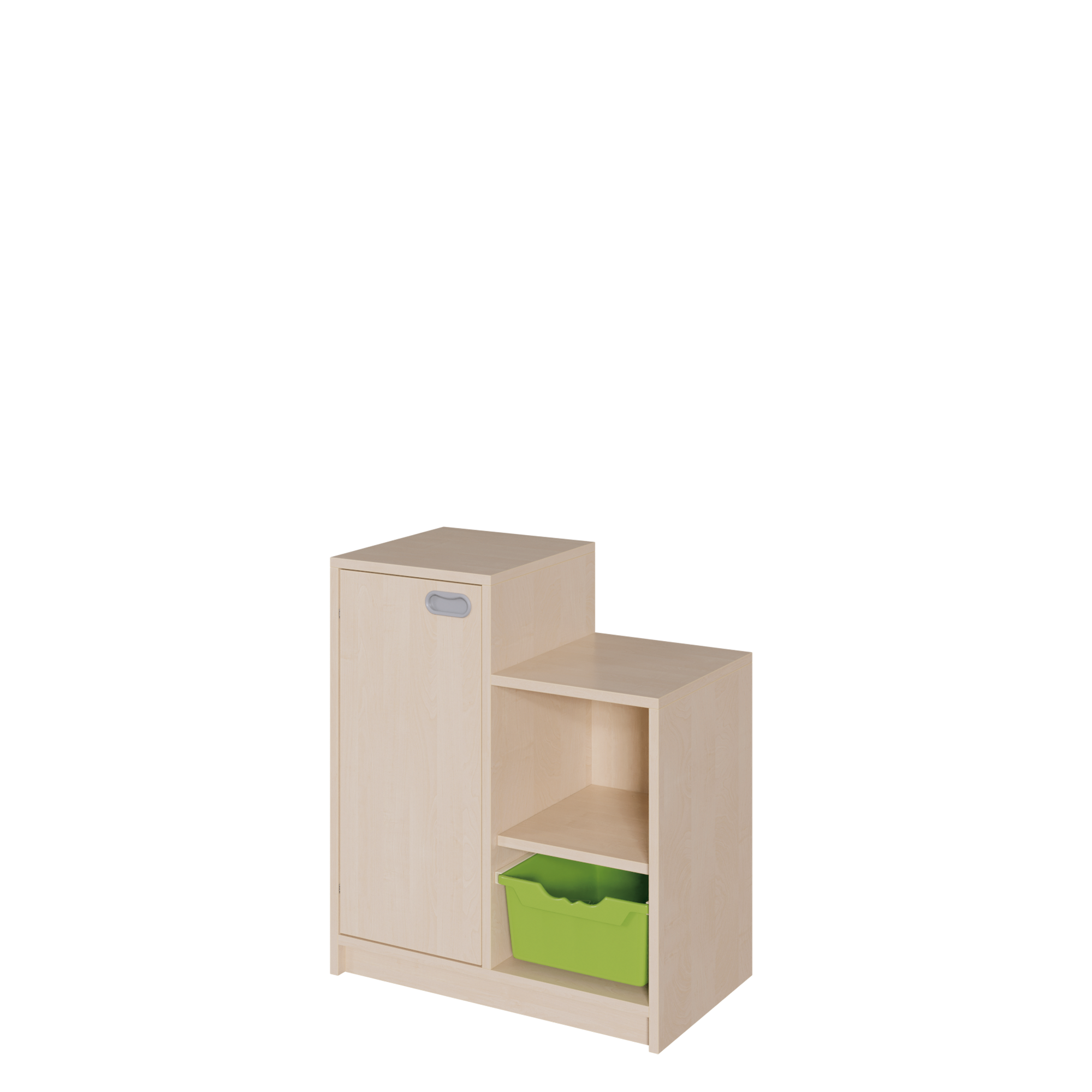 Die Serie "SideStep" bietet ein variantenreiches Sortiment von stufenförmigen Regalen und Schränken. Diese können komplett oder einzeln mit Türen, als Regal oder mit Boxen ausgewählt werden und sind jeweils in einem Höhenraster verfügbar. Die stufenförmige Kontur dieser bietet die Möglichkeit zu interessanten Stellkombinationen und die Möglichkeit, den Raum unter Dachschrägen und Treppenläufen effektiv zu nutzen. Die Breite beträgt jeweils 70,5 cm und die Korpustiefe 40 cm.