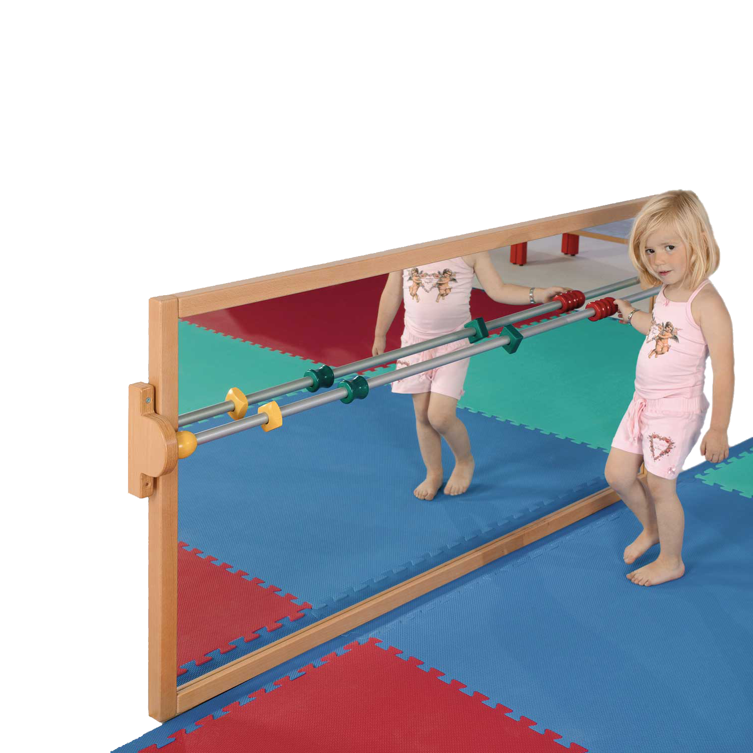 Vor dem Lauflernspiegel können die Kleinen ihre ersten Schritte und Bewegungen machen und können sich dabei gleich selbst betrachten. Um zu gehen und sich zu bewegen sowie die Elemente der Raumumgebung zu erleben, fördert eine Bildentdeckung die Entwicklung und das Wachstum des Kleinkindes. Egal wie kontrolliert die Motorik ist und wie erfolgreich der Gehversuch verläuft, der Spiegel ist natürlich auch nach vollem Körpereinsatz immer noch sicher! Den Spiegelrahmen fertigen wir aus massiver Buche, die Wandbefestigung erfolgt verdeckt. Ebene Spiegel sind aus mineralischem Glas und werden mit einer stabilen Trägerplatte verleimt. Für erfolgreichere Gehversuche kann eine optionale Lauflernstange und darauf dann zusätzliche Holzapplikationen sorgen (SPILL ST und SPILL AS).