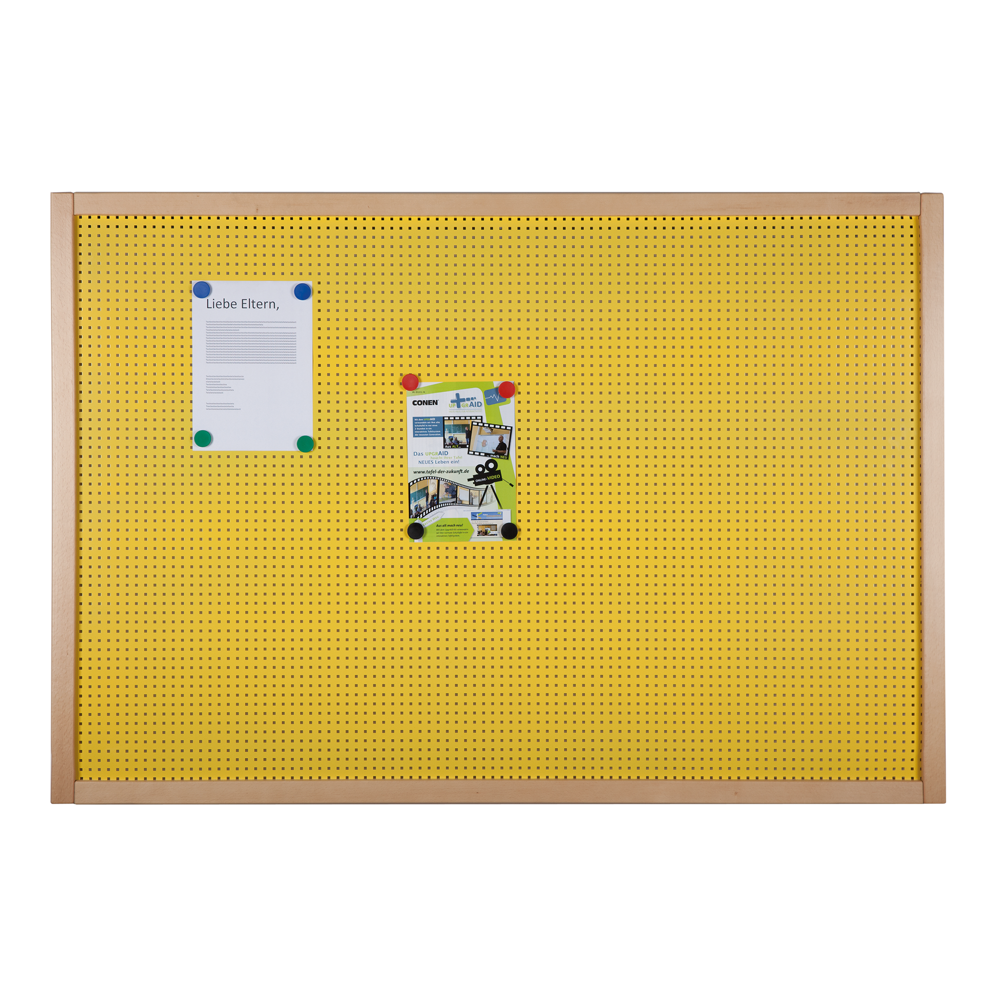Die stabile Lochblechtafel bietet viel Platz für die unterschiedlich(st)en Informationen - sie hat übrigens noch 3 Nachbarinnen in anderer Größe. Der stabile Dekorrahmen aus massiver natur lackierter Buche umschließt das magnethaftende Lochblech und bildet den schlichten und dauerhaften Abschluß. Den Farbwunsch für die Blechfarbe teilen Sie uns bitte mit. Die Lochblechtafel ist fest an der Wand zu montieren. Das Montagematerial sowie die Wandaufhängung werden von uns geliefert. Die Montage an der richtigen Stelle können sowohl Ihr Hausmeister oder aber unsere Mitarbeiter bei der Anlieferung ausführen, bitte entscheiden Sie dieses bei der Bestellung.