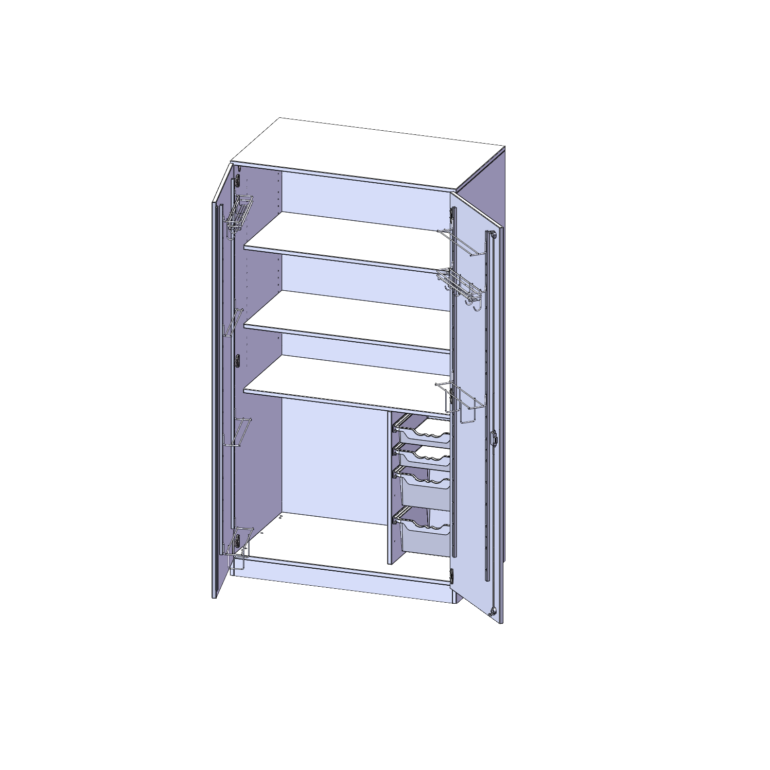 B/H/T: 104,5x190x60 cm, Türen mit Instrumentenhalterungen, mit 4 ErgoTray Boxen, mit Sockel (81 mm)