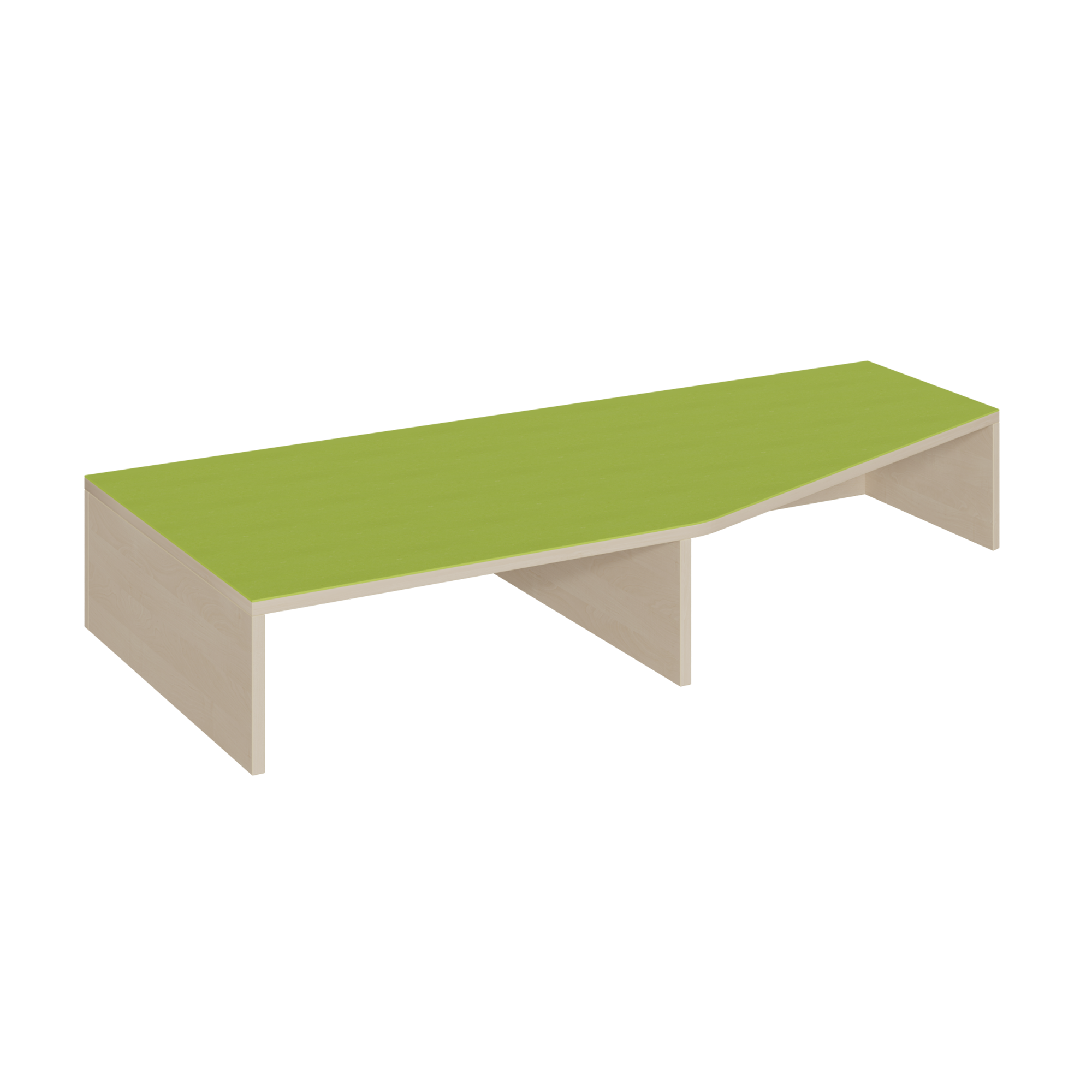 Unser Schrägenpodest verbindet Podeste der Tiefe 40 cm und 70 cm auf elegante Art und Weise. Zusätzlich bietet es auf der linken Seite einem 66 cm tiefen Rollkasten einen Garagenplatz. Eine weitere geschlossene Nische entsteht auf der rechten Seite unter der Linoleum-Oberplatte. Die 2 mm - ABS Sicherheitskanten an der Podestplatte aus 19 mm E 1-Feinspanplatte gewährleisten beanspruchungsfähige Bauteilkanten, die den täglichen Beanspruchungen ohne Weiteres standhalten. Die Linoleumoberfläche stellt eine strapazierfähige und pflegeleichte Oberfläche zur Verfügung, sie ist aus mehreren fröhlichen Farben wählbar. Mit dem Material Linoleum wird eine geräuschdämmende, kratzfeste, abwisch- und desinfizierbare Oberfläche angeboten. Das Dekor des Podestkorpus ist ebenfalls in mehreren Varianten verfügbar: bitte wählen Sie bei der Bestellung!