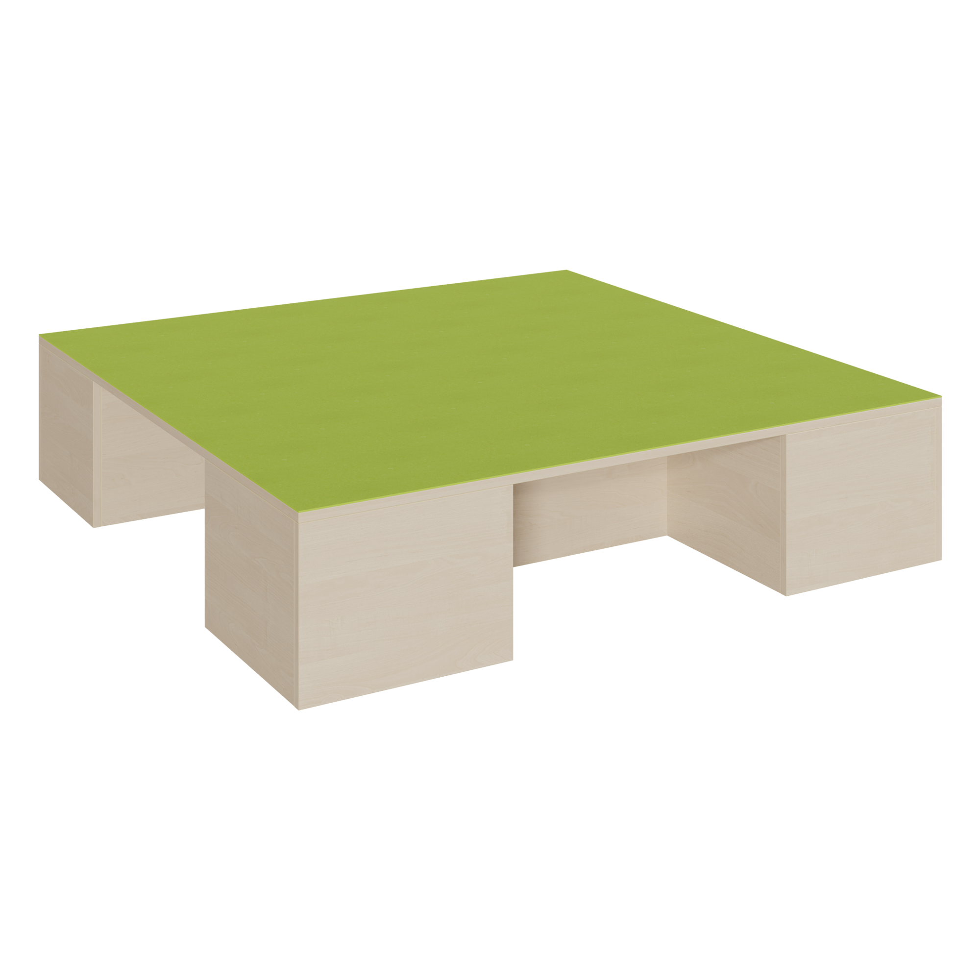 Das Linoleumpodest mit der großen Fläche von 1,5 x 1,5 m kann sowohl als erhöhte Spielebene und als auch als Bühne genutzt werden. Zugleich ist es die Garage für 3 Rollkästen. In Kombination mit anderen Podestelementen lässt es sich sehr einfach zu einer Podestlandschaft verbinden. Dann können damit auch einfache Rückzugsbereiche gestaltet werden. Die strapazierfähige und leicht zu reinigende Linoleumoberfläche kann in verschiedenen Farben gewählt werden, ebenso das Dekor des Podestes. Die Anbindung zu anderen Podestelementen kann über zusätzliche Podestverbinder (unsere Artikel Nr. KLAM) sicher gestellt werden. (Die 3. Rollkastennische -rechts hinten- ist im Bild auf der Oberplatte grafisch angedeutet.) Die Anbindung zu anderen Podestelementen kann über zusätzliche Podestverbinder (unsere Artikel Nr. KLAM) sicher gestellt werden.