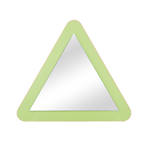 Ein dreieckiger Spiegel mit den Maßen B/H: 55x48 cm. Die Aufhängung ist für 2 Varianten vorbereitet: die Spitze kann wahlweise nach oben oder nach unten zeigend montiert werden.