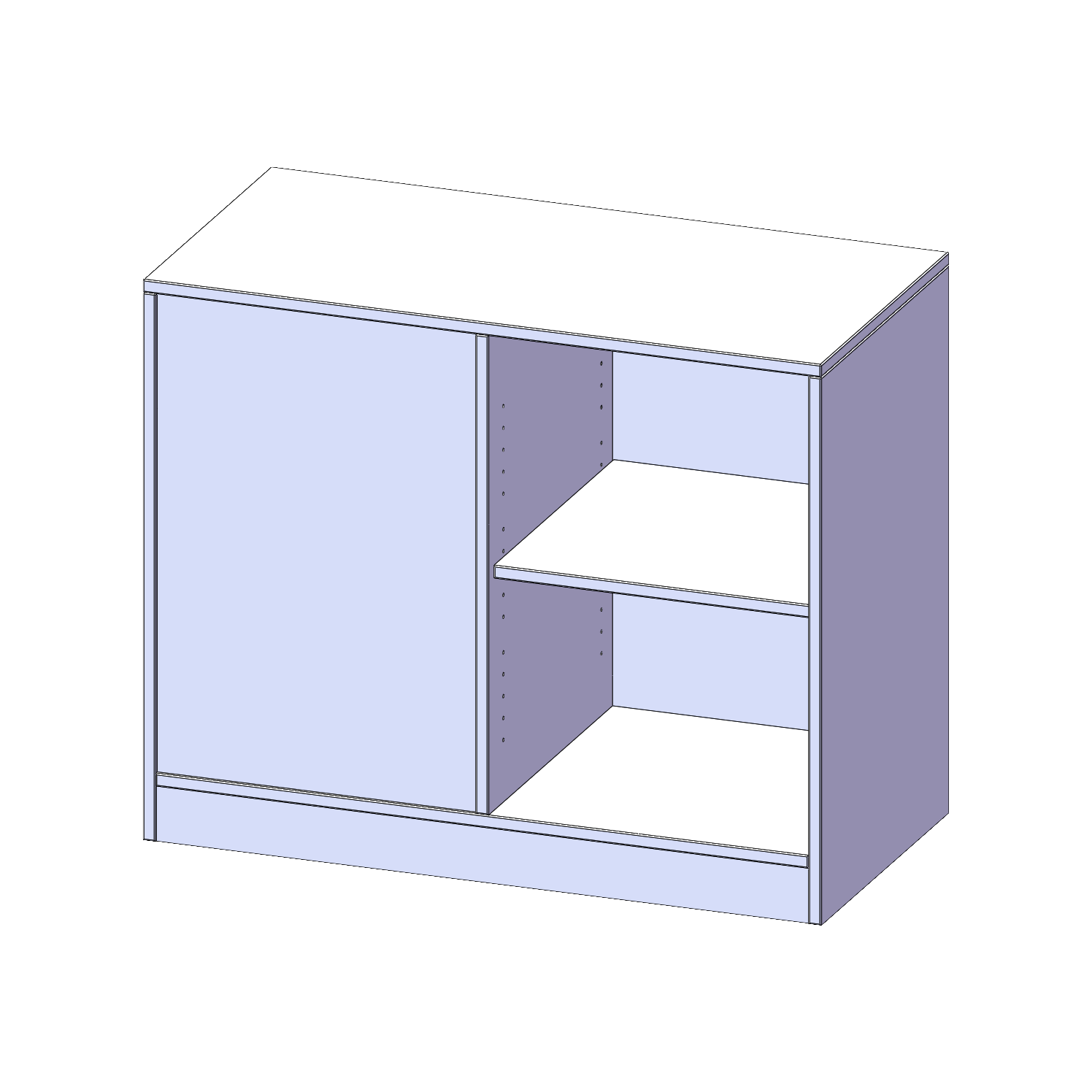 B/H/T: 100x82x50 cm, 4 Fächer, wechselseitig angeordnet, mit Sockel (81 mm)