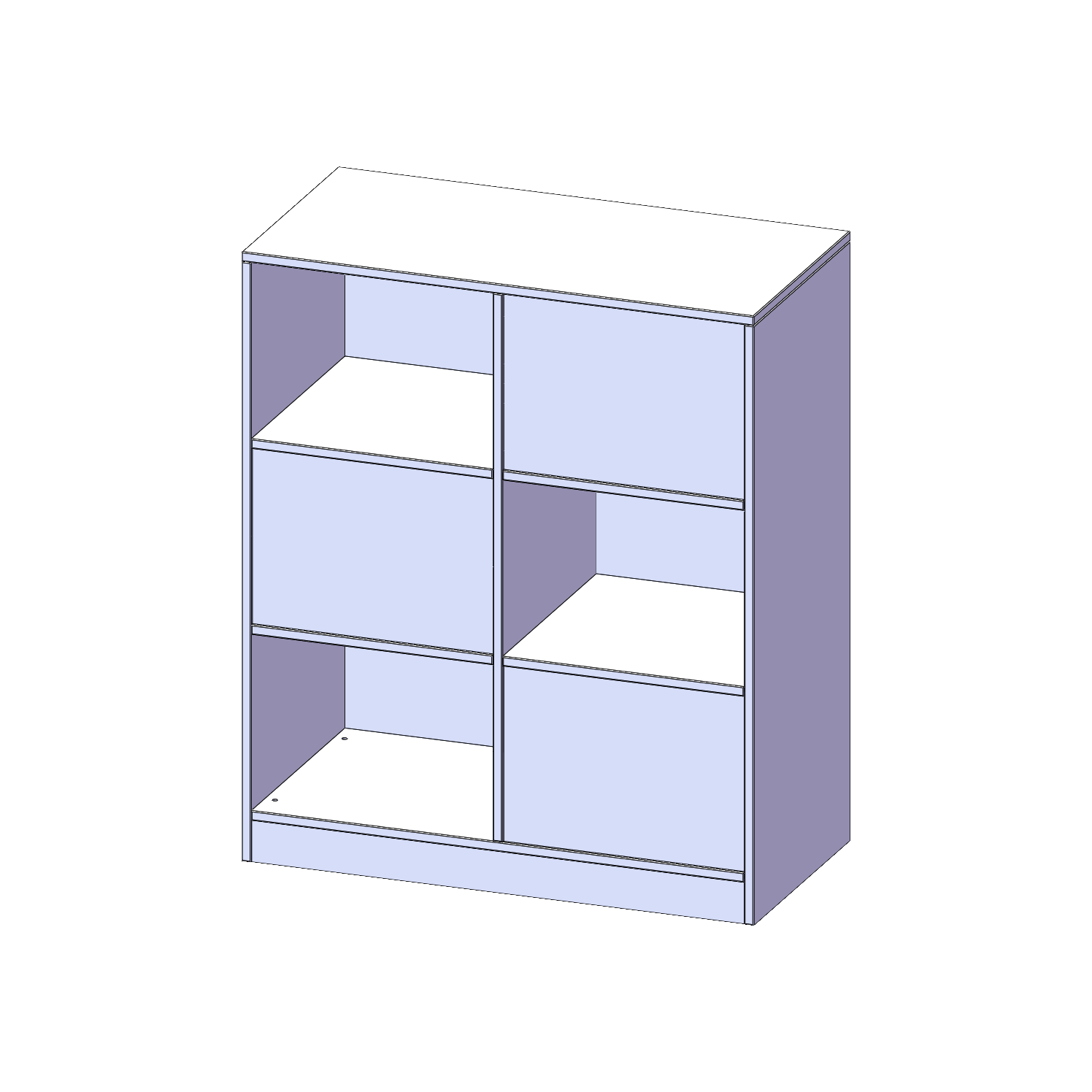 B/H/T: 100x118x50 cm, 6 Fächer, wechselseitig angeordnet, mit Sockel (81 mm)