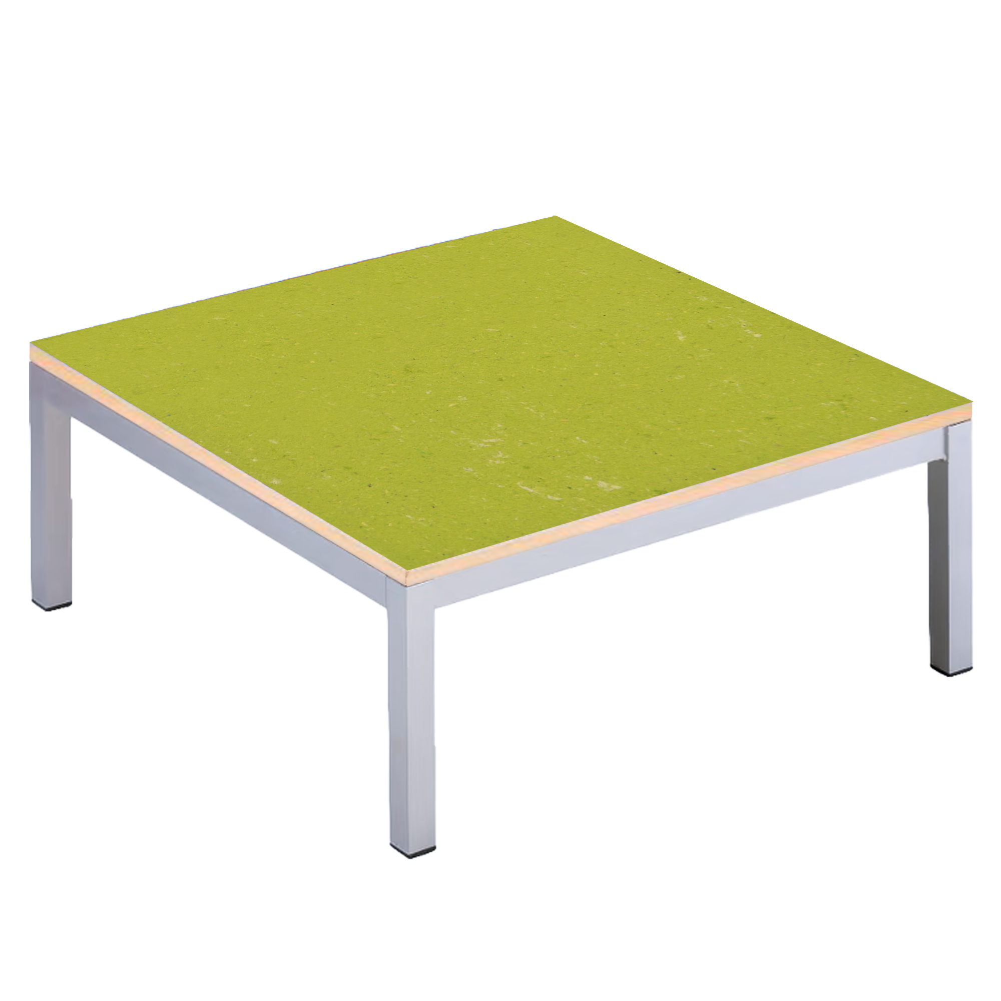 Die beiden Riesenpodeste dieser kleinen Produktfamilie sind immer 40 cm hoch, die Kantenlängen betragen 1 m oder in der Rechteckvariante 2 x 1 m. Durch die leichte Bauweise können sie sehr bequem für unterschiedlichen Anforderungen des Gruppenlebens umgruppiert werden. Sollte der Fußbodenunebenheiten aufweisen oder zwischen benachbarten Podestenflächen Höhenunterschiede auftreten, können die Differenzen sehr einfach durch die immer vorhandenen Stellfüße ausgeglichen werden. Aus diesem Grund steht das Stahlgestell umlaufend geringfüging von der Plattenkante zurück.