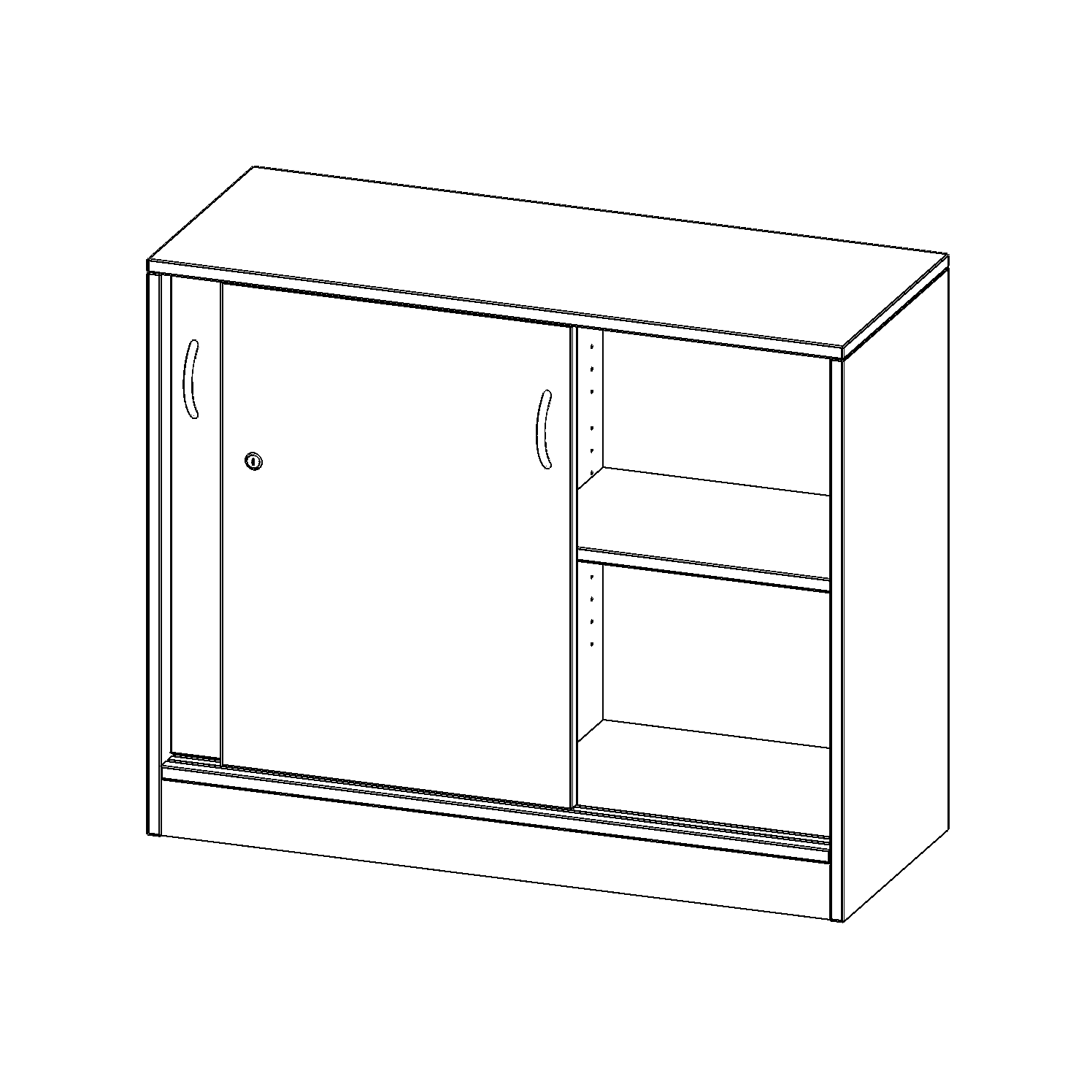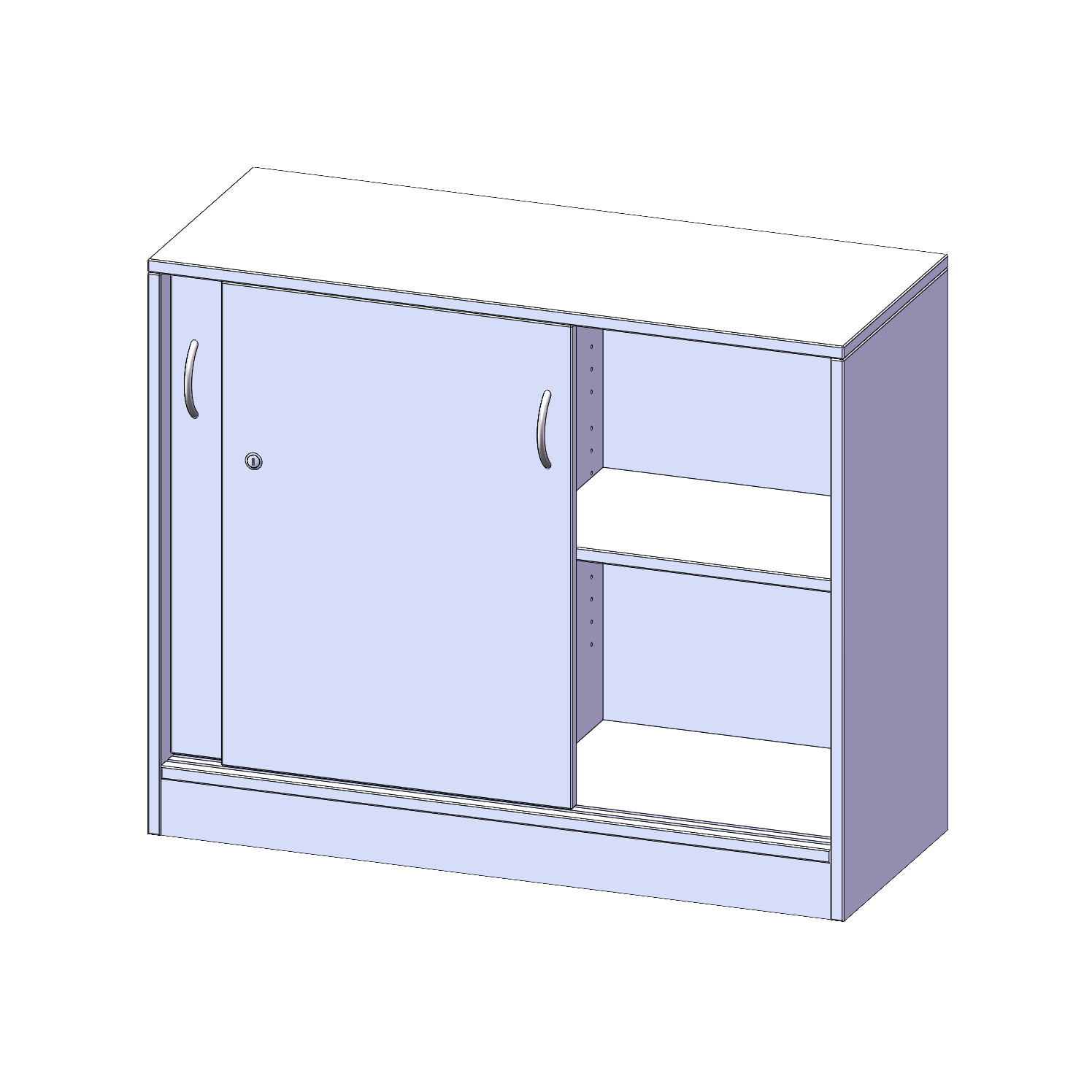 Schränke mit Schiebetüren sind die ideale Lösung, wenn aufschwingende Drehtüren zu ausladend wären - zum Beispiel wenn Ihre Schrankwand oder der einzelne Schrank in einem Durchgang hinter einem Arbeitsplatz steht. Die Türen sind mittels Druckzylinderschloss abschließbar, beide Türen sind mit einem Bügelgriff (Farbe: Alu) ausgestattet und lassen sich so leicht aufschieben. Die Türen laufen sehr leicht in eingenuteten Führungsschienen.