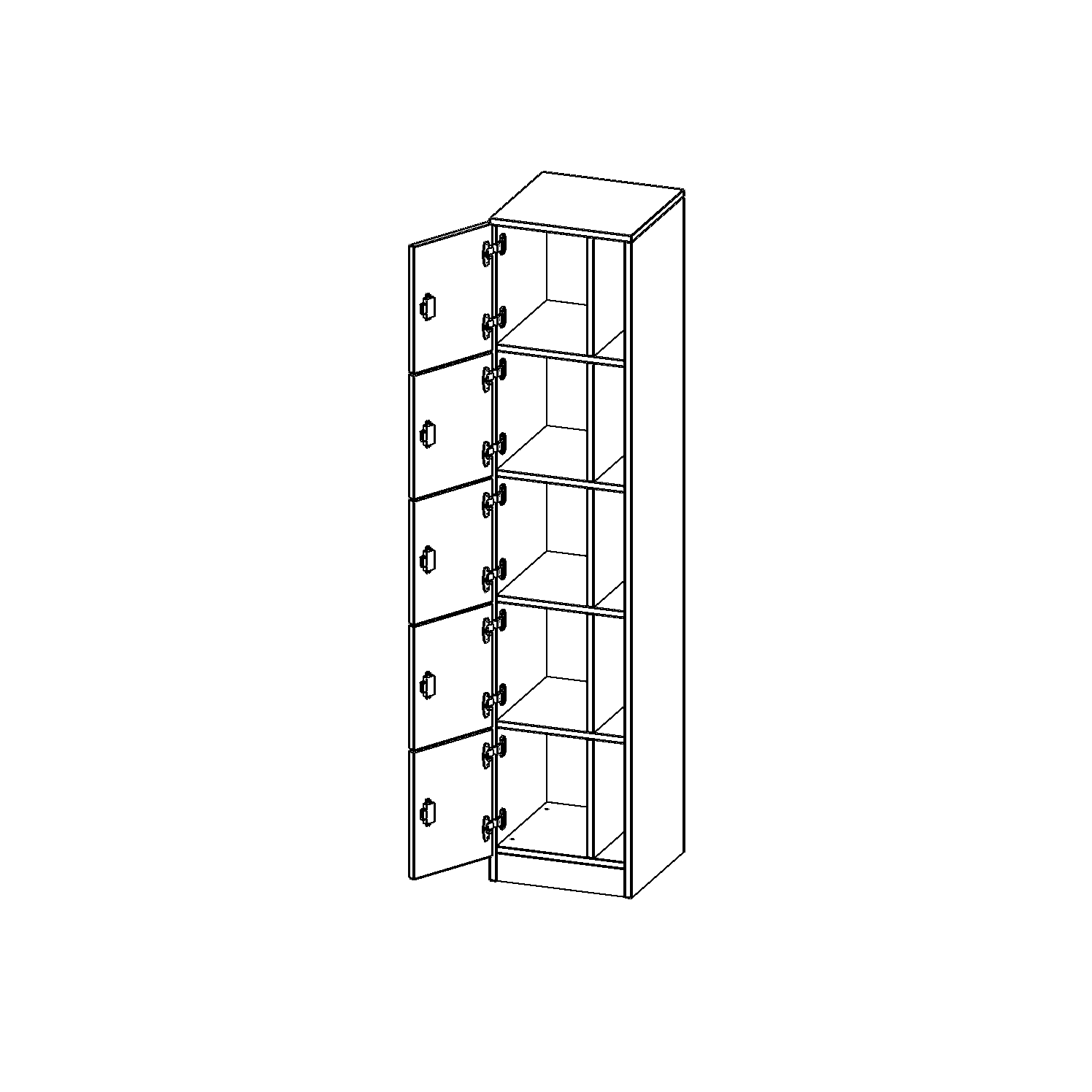 B/H/T: 40,5x190x40 cm, 5 Schließfächer, mit Postfach, Türen öffnen nach links, mit Sockel (81 mm)