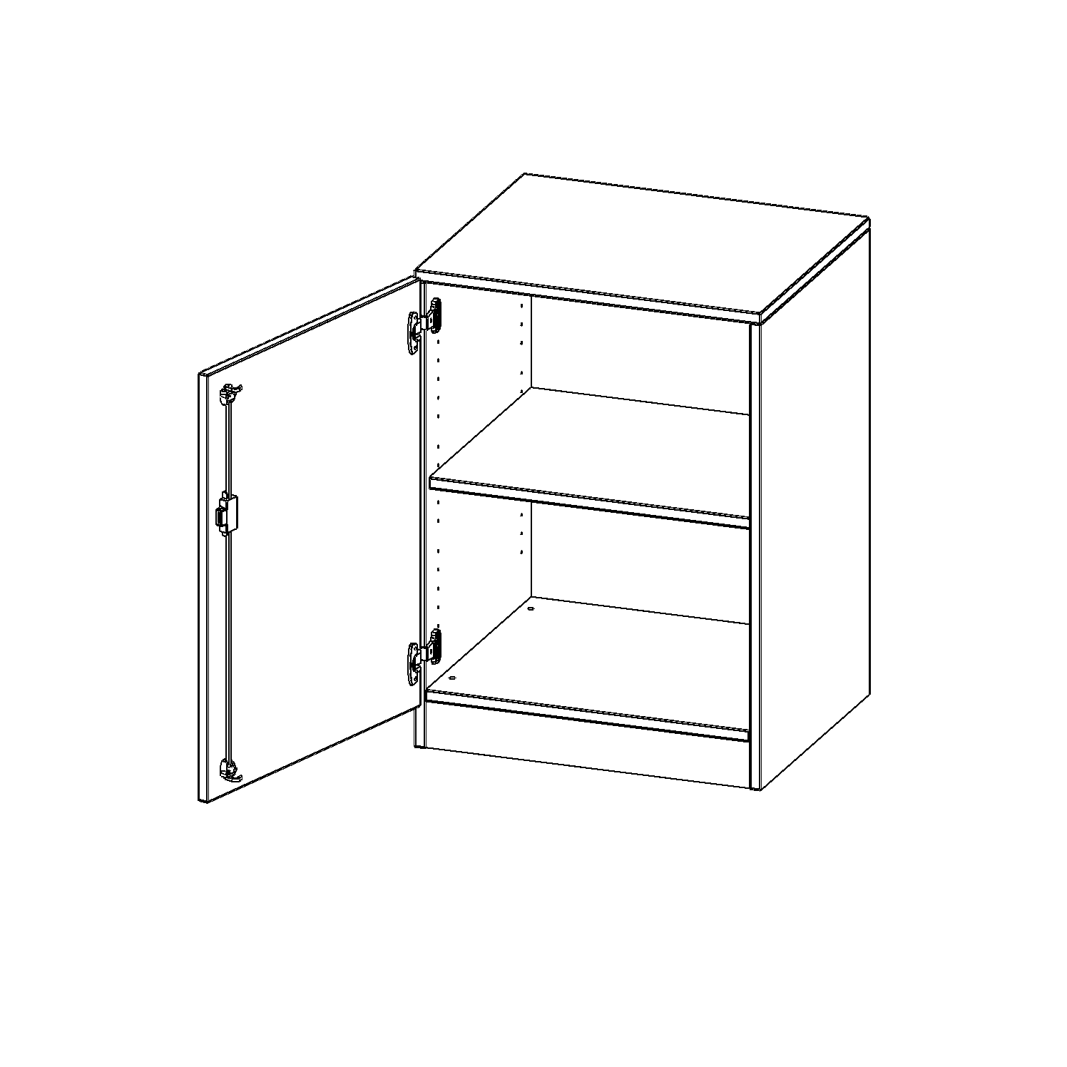 Alle Schränke werden aus melaminharzbeschichteter E1-Feinspanplatte gefertigt, die FSC zertifiziert und formaldehydfrei sind. Als Kanten verwenden wir besonders robuste 2 mm starke ABS Kanten, die unter hoher Temperatur fest verleimt werden. Bitte wählen Sie Ihr Wunschdekor aus unserer Dekorpalette aus. Die Einlegeböden sind im Raster von 32 mm verstellbar. Unsere hochwertigen Bodenträger verfügen über einen "Ausziehstop", so wird verhindert, dass Böden mit Inhalt darauf aus dem Regal oder Schrank rutschen können. Die Türen lassen sich dank 270° öffnender Scharniere an den Korpus anlegen. Sie sind mit einem Schloss verschließbar. An den Türen befindet sich eine Staublippe.