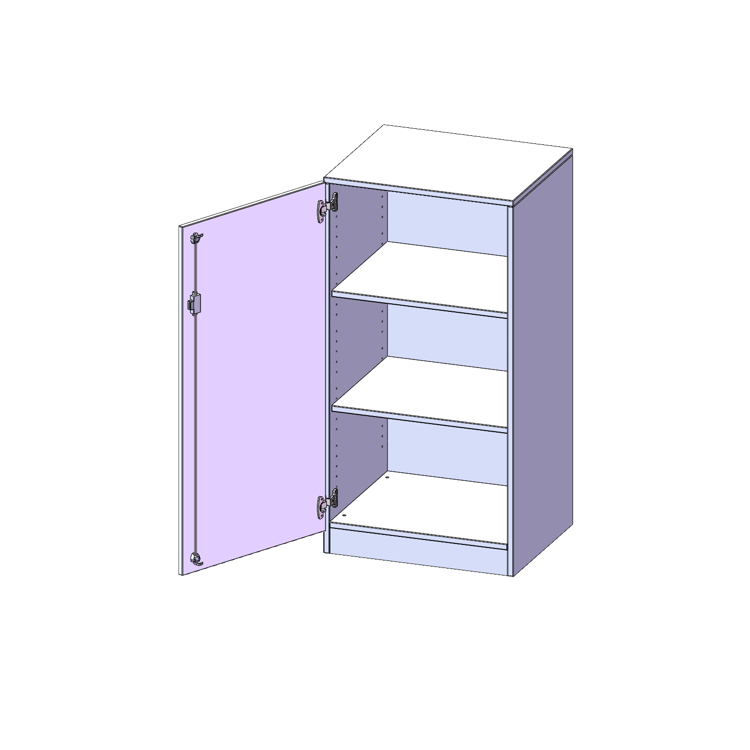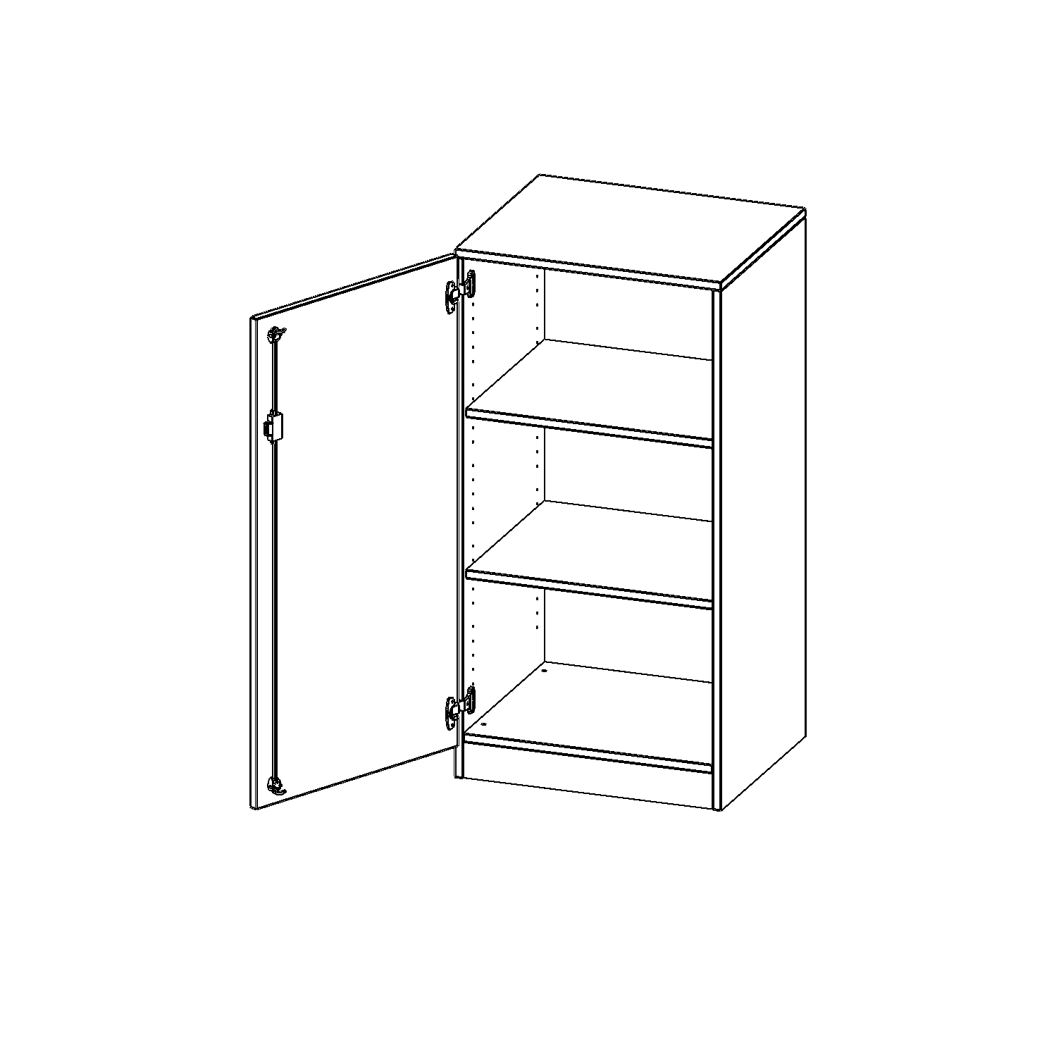 Alle Schränke werden aus melaminharzbeschichteter E1-Feinspanplatte gefertigt, die FSC zertifiziert und formaldehydfrei sind. Als Kanten verwenden wir besonders robuste 2 mm starke ABS Kanten, die unter hoher Temperatur fest verleimt werden. Bitte wählen Sie Ihr Wunschdekor aus unserer Dekorpalette aus. Die Einlegeböden sind im Raster von 32 mm verstellbar. Unsere hochwertigen Bodenträger verfügen über einen "Ausziehstop", so wird verhindert, dass Böden mit Inhalt darauf aus dem Regal oder Schrank rutschen können. Die Türen lassen sich dank 270° öffnender Scharniere an den Korpus anlegen. Sie sind mit einem Schloss verschließbar. An den Türen befindet sich eine Staublippe.