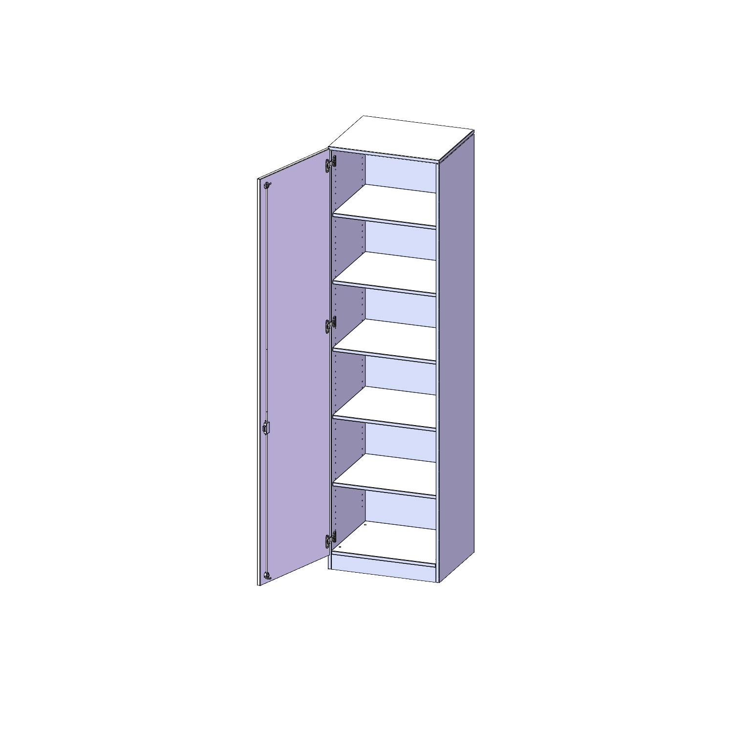Alle Schränke werden aus melaminharzbeschichteter E1-Feinspanplatte gefertigt, die FSC zertifiziert und formaldehydfrei sind. Als Kanten verwenden wir besonders robuste 2 mm starke ABS Kanten, die unter hoher Temperatur fest verleimt werden. Bitte wählen Sie Ihr Wunschdekor aus unserer Dekorpalette aus. Die Einlegeböden sind im Raster von 32 mm verstellbar. Unsere hochwertigen Bodenträger verfügen über einen "Ausziehstop", so wird verhindert, dass Böden mit Inhalt darauf aus dem Regal oder Schrank rutschen können. Die Türen lassen sich dank 270° öffnender Scharniere an den Korpus anlegen. Sie sind mit einem Schloss verschließbar. An den Türen befindet sich eine Staublippe.