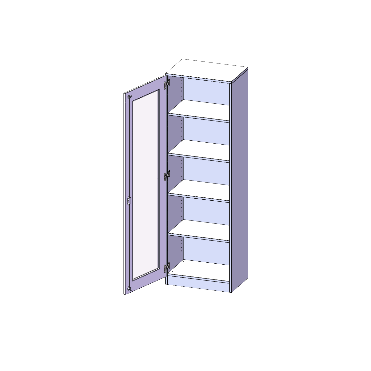B/H/T: 60x190x40 cm, Tür mit Glaseinsatz, Vollausschnitt, abschließbar, Tür öffnet nach links, mit Sockel (81 mm)