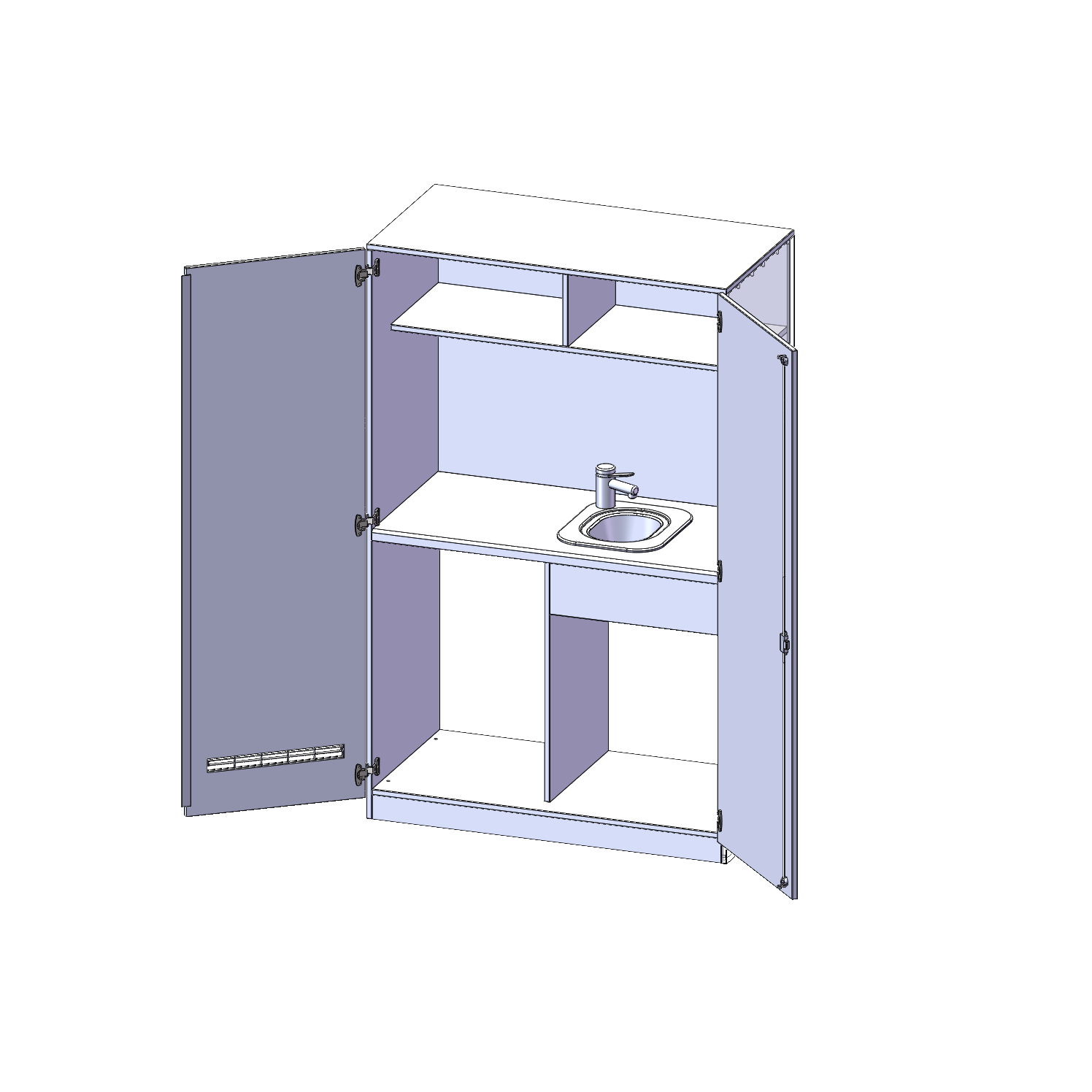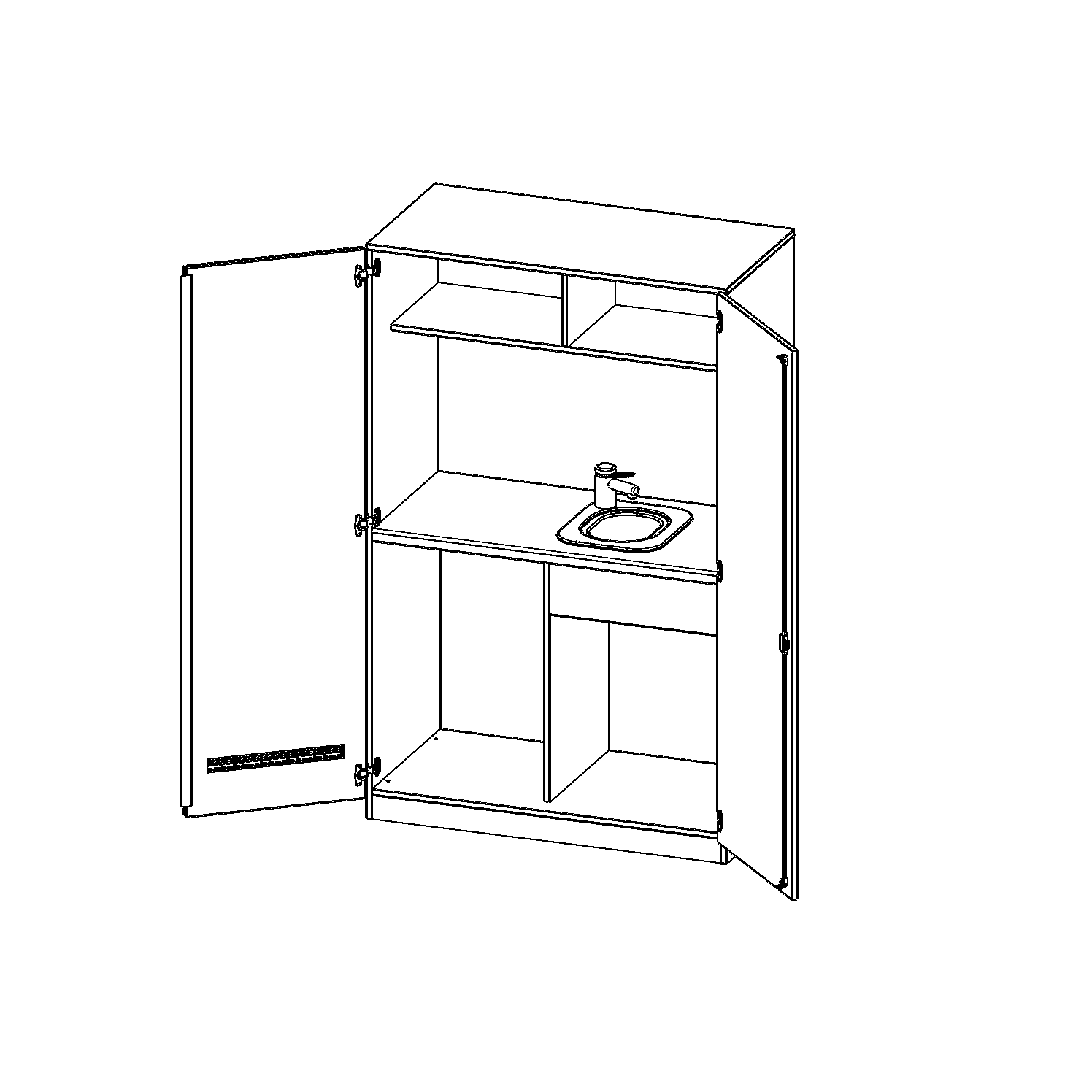 Die praktische Schrankküche zur Zubereitung des aufmunternden Zwischendurch-Kaffees oder eines Pausensnacks,