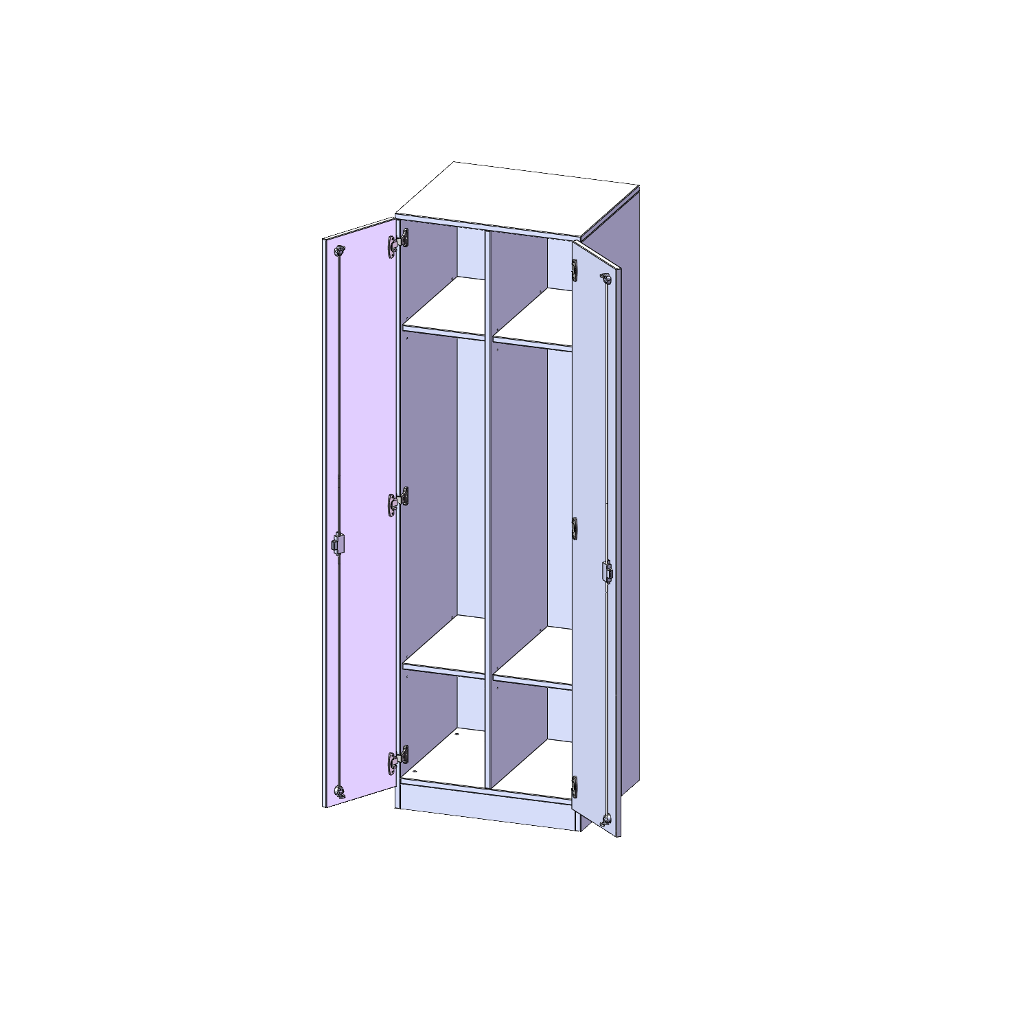 Im Inneren befinden sich Ablagen für Schuhe, Mützen oder Hüte, Dreifachhaken. Ideal als Garderobeneinheiten für mehrere Schüler in Kombination mit anderen Spinden. Die Türen sind abschließbar und öffnen 270°.