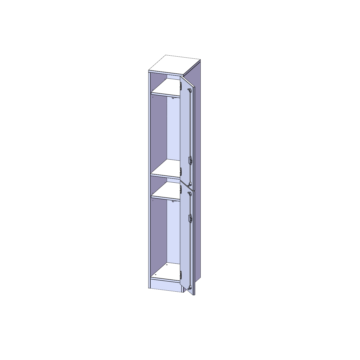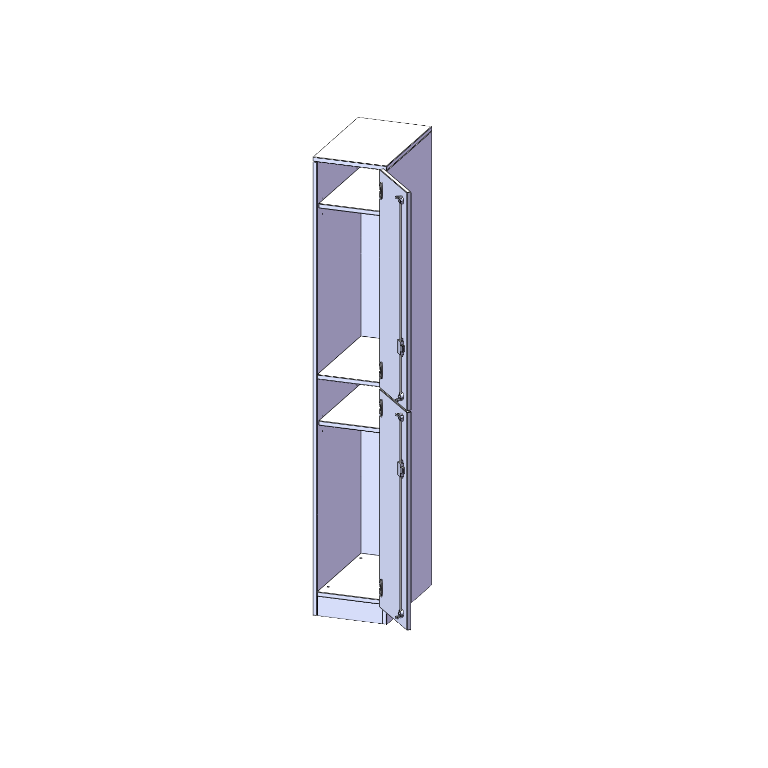Im Inneren befinden sich eine Ablage für Mützen oder Hüte, Dreifachhaken. Ideal als Garderobeneinheiten für mehrere Schüler in Kombination mit anderen Spinden. Die Türen sind abschließbar und öffnen 270°. Je 2 Abteile übereinander.