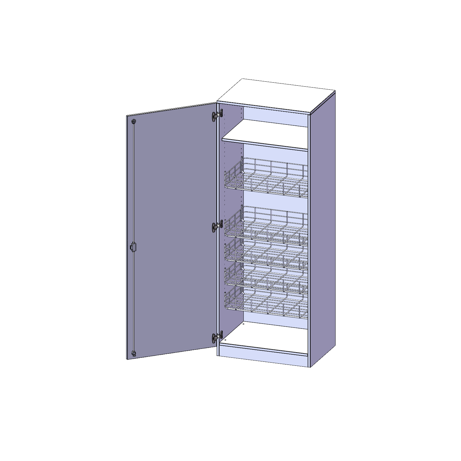 Alle Schränke werden aus melaminharzbeschichteter E1-Feinspanplatte gefertigt, die FSC zertifiziert und formaldehydfrei sind. Als Kanten verwenden wir besonders robuste 2 mm starke ABS Kanten, die unter hoher Temperatur fest verleimt werden. Bitte wählen Sie Ihr Wunschdekor aus unserer Dekorpalette aus. Die Einlegeböden sind im Raster von 32 mm verstellbar. Unsere hochwertigen Bodenträger verfügen über einen "Ausziehstop", so wird verhindert, dass Böden mit Inhalt darauf aus dem Regal oder Schrank rutschen können. Die Türen lassen sich dank 270° öffnender Scharniere an den Korpus anlegen. Sie sind mit einem Schloss verschließbar. An den Türen befindet sich eine Staublippe.