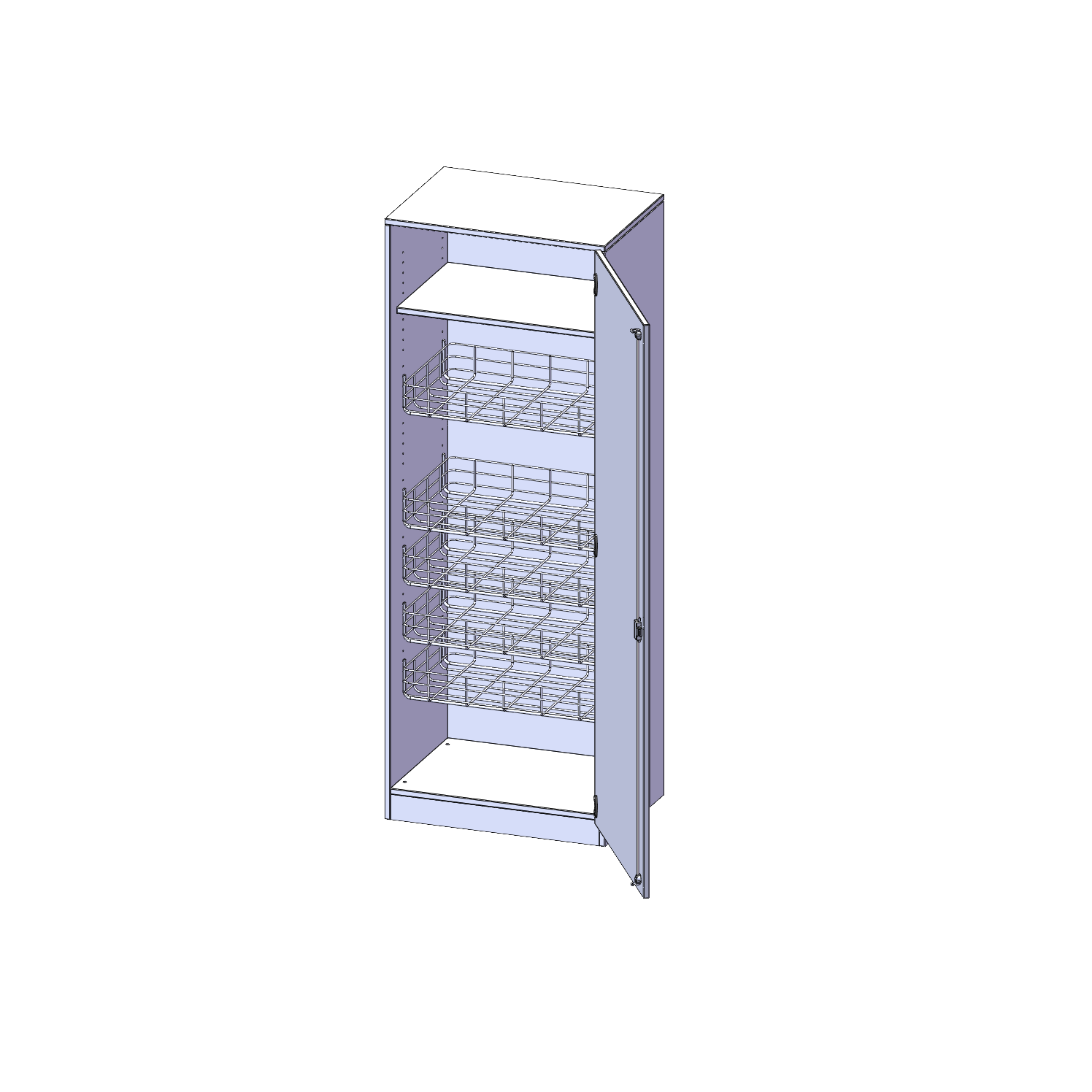 B/H/T: 70,3x190x60 cm, mit 4 Ballkörben, Halterungen an der Tür, Tür öffnet rechts, mit Sockel (81 mm)