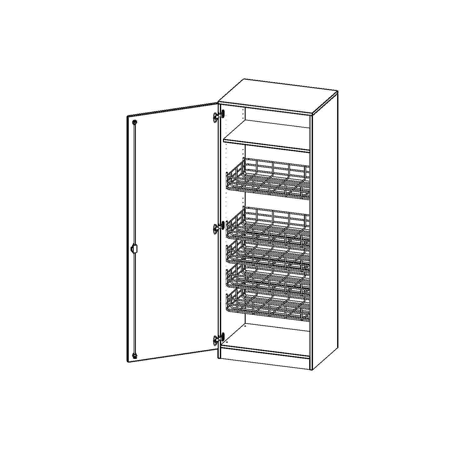 B/H/T: 70,3x190x60 cm, mit 4 Ballkörben, Halterungen an der Tür, Tür öffnet links, mit Sockel (81 mm)