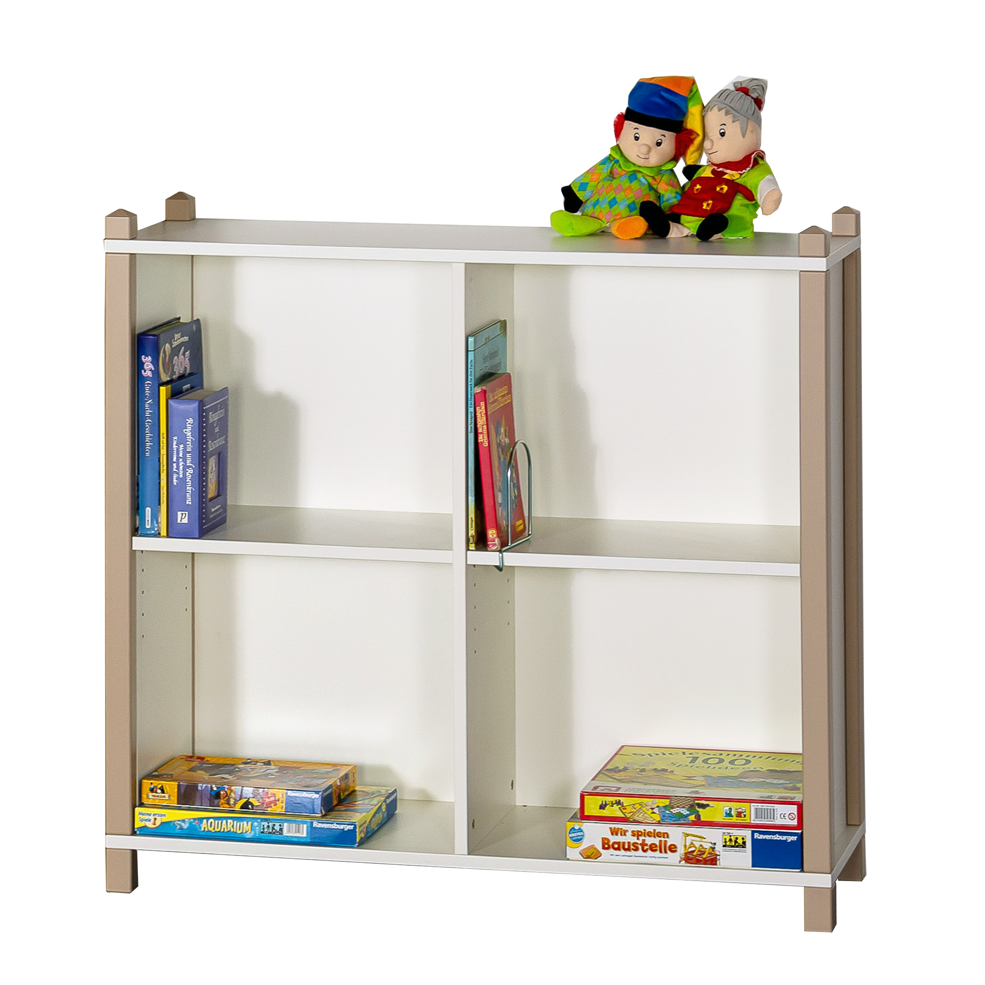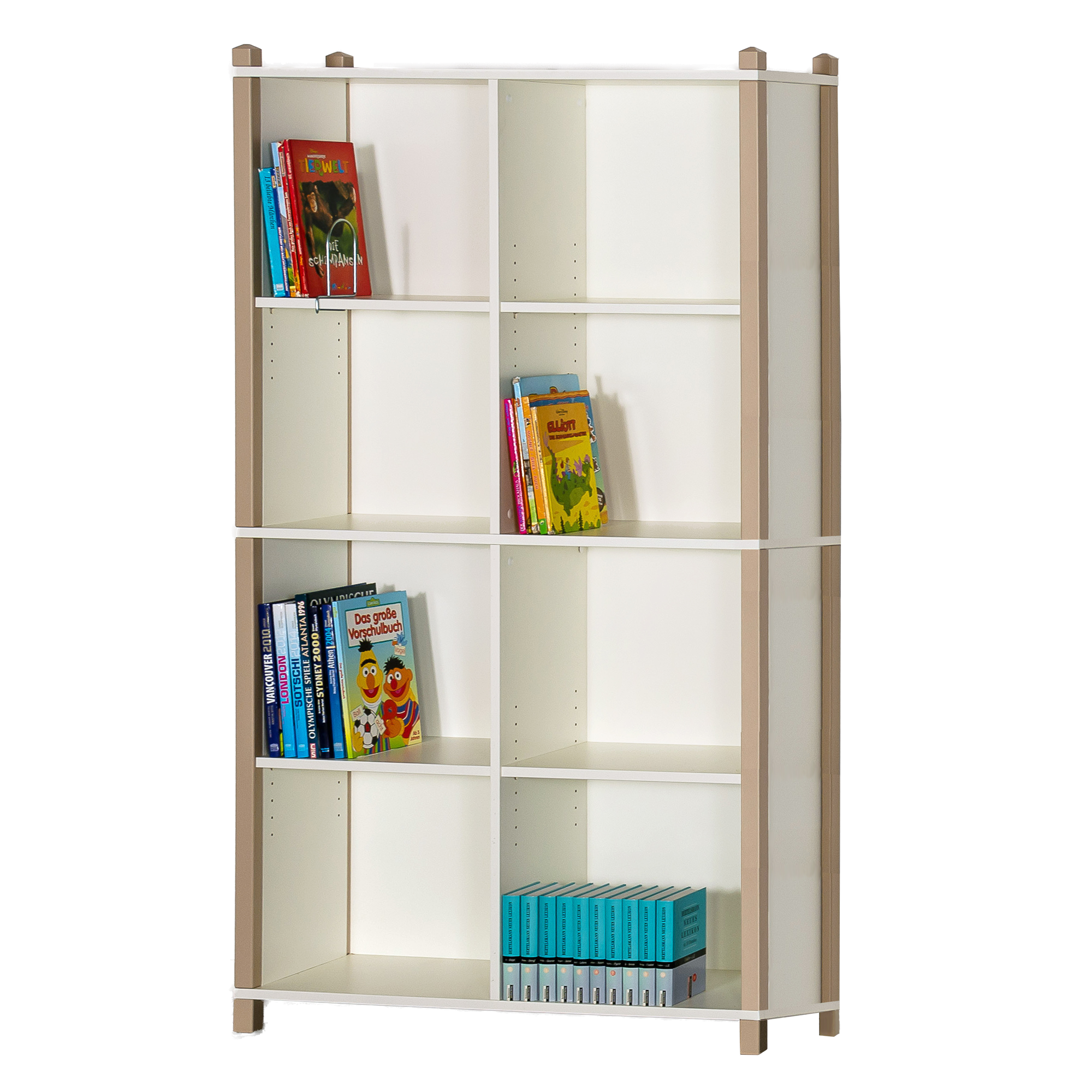 Für die Konstruktion des Bibliotheksregales wurde die Stollenbauweise gewählt und aufgrund des Einsatzzweckes immer mit Mittelwänden ausgeführt. Dadurch und durch zusätzliche Mittelfüße ist eine Durchbiegung der Böden durch in Bibliotheksanwendungen übliche schwere Lasten auf ein sehr geringes Minimum begrenzt. Für eine den Raumgegebenheiten angepasste Montage werden die 6 Füße des Regals mit Bodenausgleichsschrauben geliefert. Je nach Einsatzzweck und optischer Gestaltungsvorstellung kann aus dem Sortiment eine von 3 verschiedenen Regalhöhen gewählt werden. Trotz der Stollenbauweise hat das Regal selbstverständlich Seiten und Rückwände. Bei gleicher Aufteilung der Einlegeböden besitzen alle Fächer folgende lichte Maße: 48x41 (B/H). Die Einlegeböden sind wie üblich im bewährten 32-mm-Raster verstellbar und lassen dadurch auch individuelle Fachhöhen zu. Alle Böden des Regals eignen sich aufgrund des Einsatzes von melaminharzbeschichter Spanplatte in 19 mm Dicke für das Anbringen von Buchstützen. Die Stollen bestehen aus sehr stabilem Buche-Massivholz und können ja nach Gestaltungswünschen in farbiger oder auch mit transparenter Lackierung geliefert werden. Die Dekorwahl der anderen Bauteile ist ebenso gegeben.
