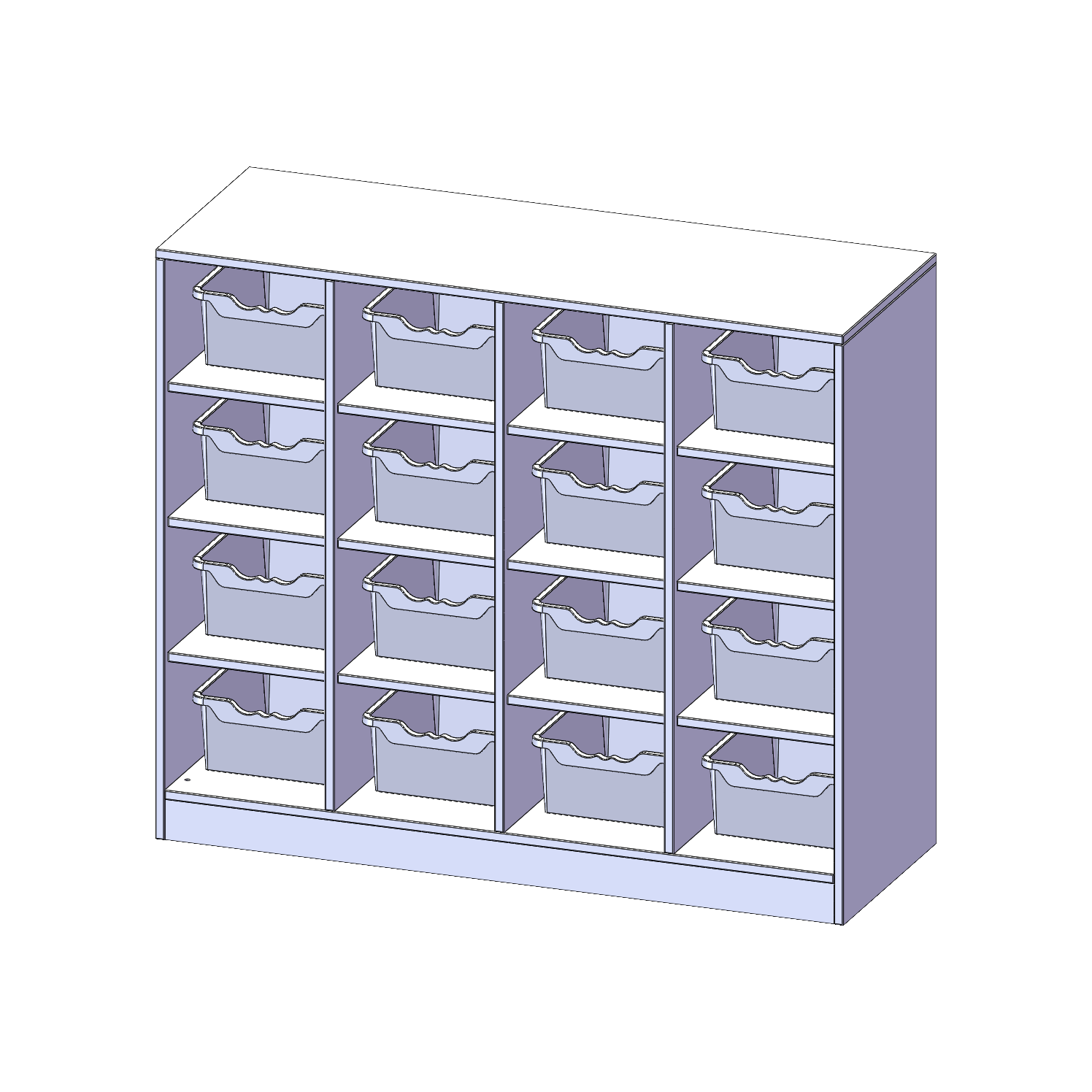 B/H/T: 138,7x118x50 cm, 16 halbhohe Fächer, je mit einer hohen ErgoTray Box, mit Sockel (81 mm)
