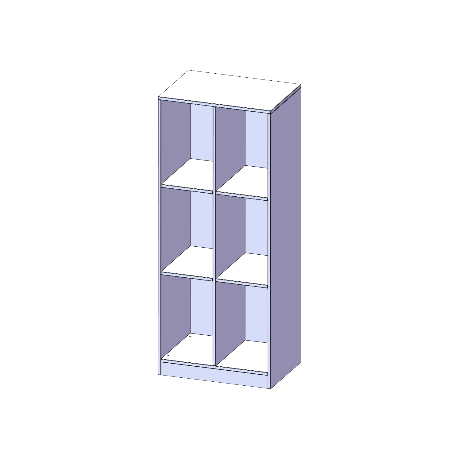 Breite 70,3 cm, Gesamthöhe 172 cm, 6 hohe Fächer, mit Sockel (81 mm)