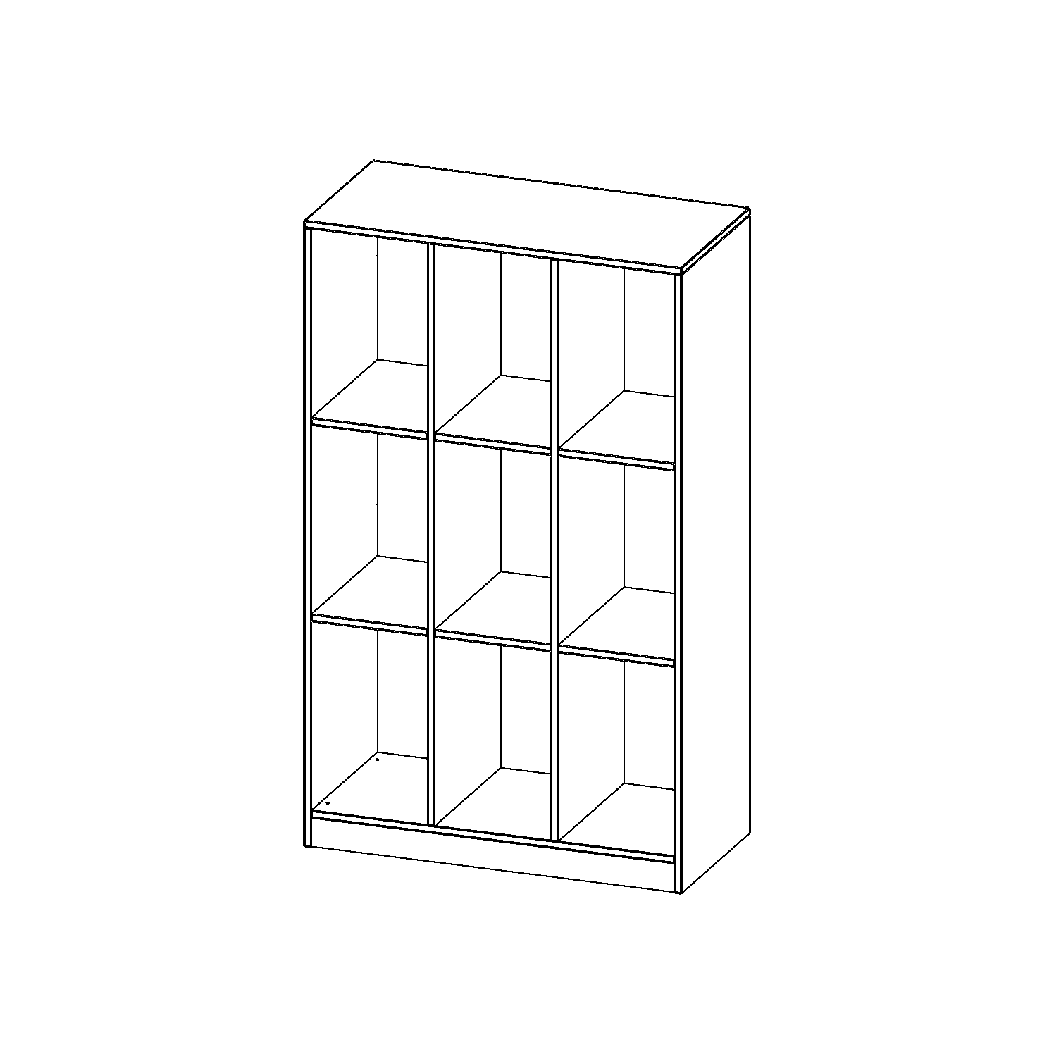 Breite 104,5 cm, Gesamthöhe 172 cm, 9 hohe Fächer, mit Sockel (81 mm)