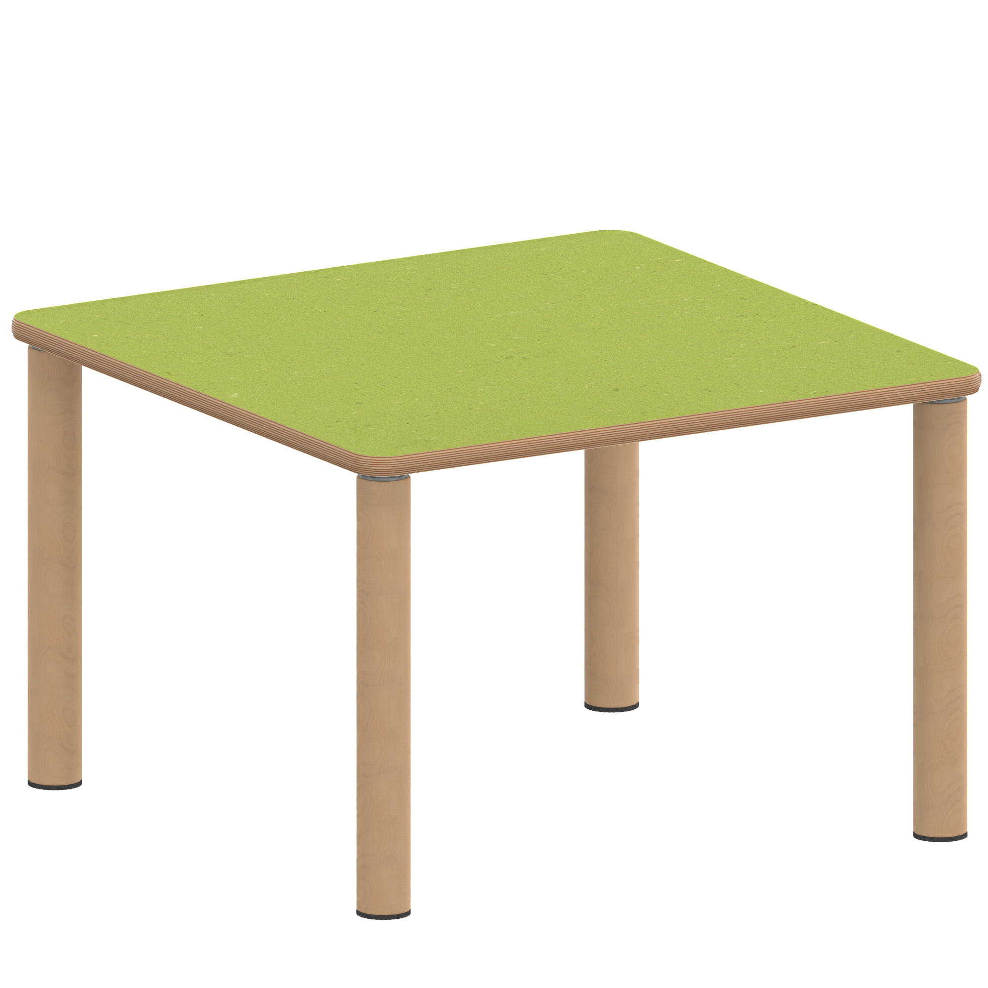 Quadrattische, Maße B/T: 80x80 bzw. 60x60 cm, Höhen 25…76 cm, Massivholzbeine Ø 60 mm, Fußvariante: Stellfuß