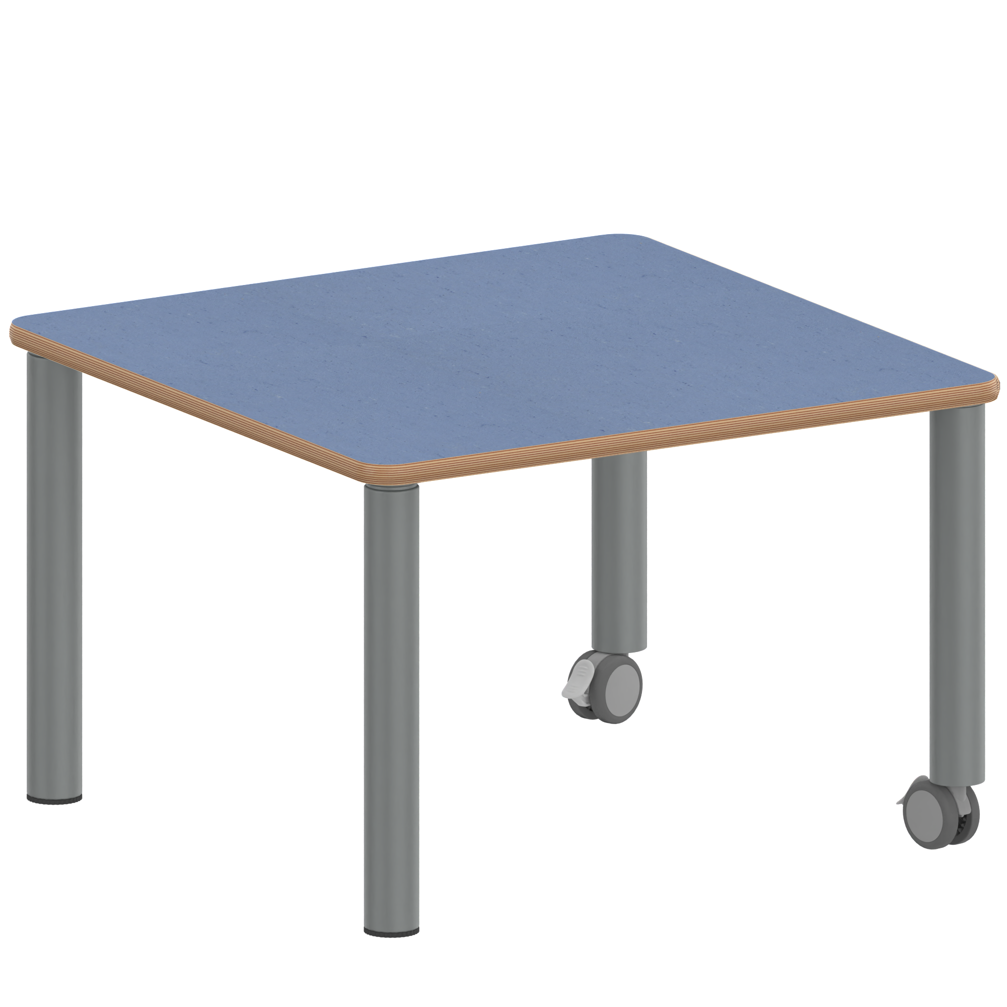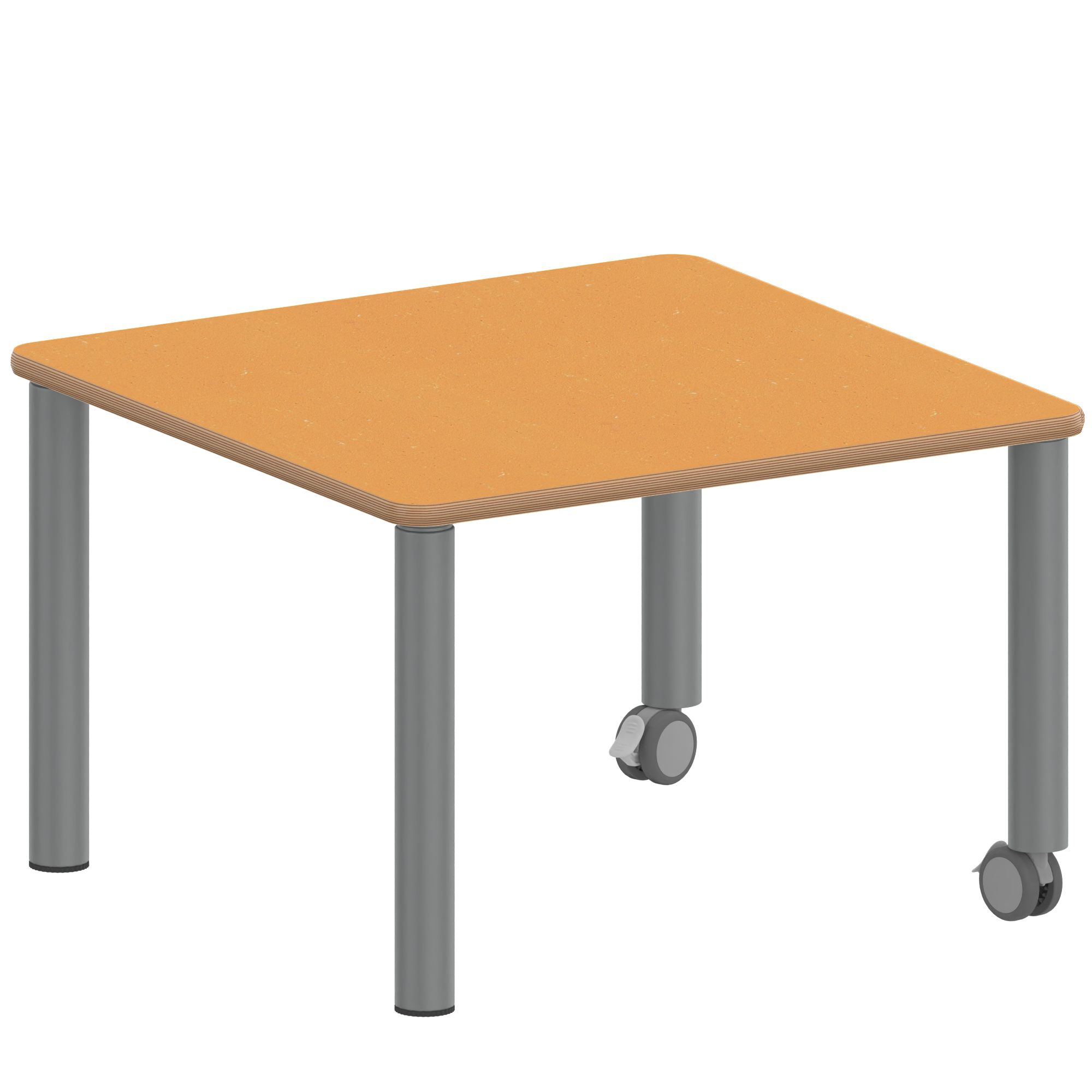 Quadrattische, Maße B/T: 80x80 bzw. 60x60 cm, Höhen 25…76 cm, Stahlrohrbeine Ø 60 mm, Fußvariante: fahrbar