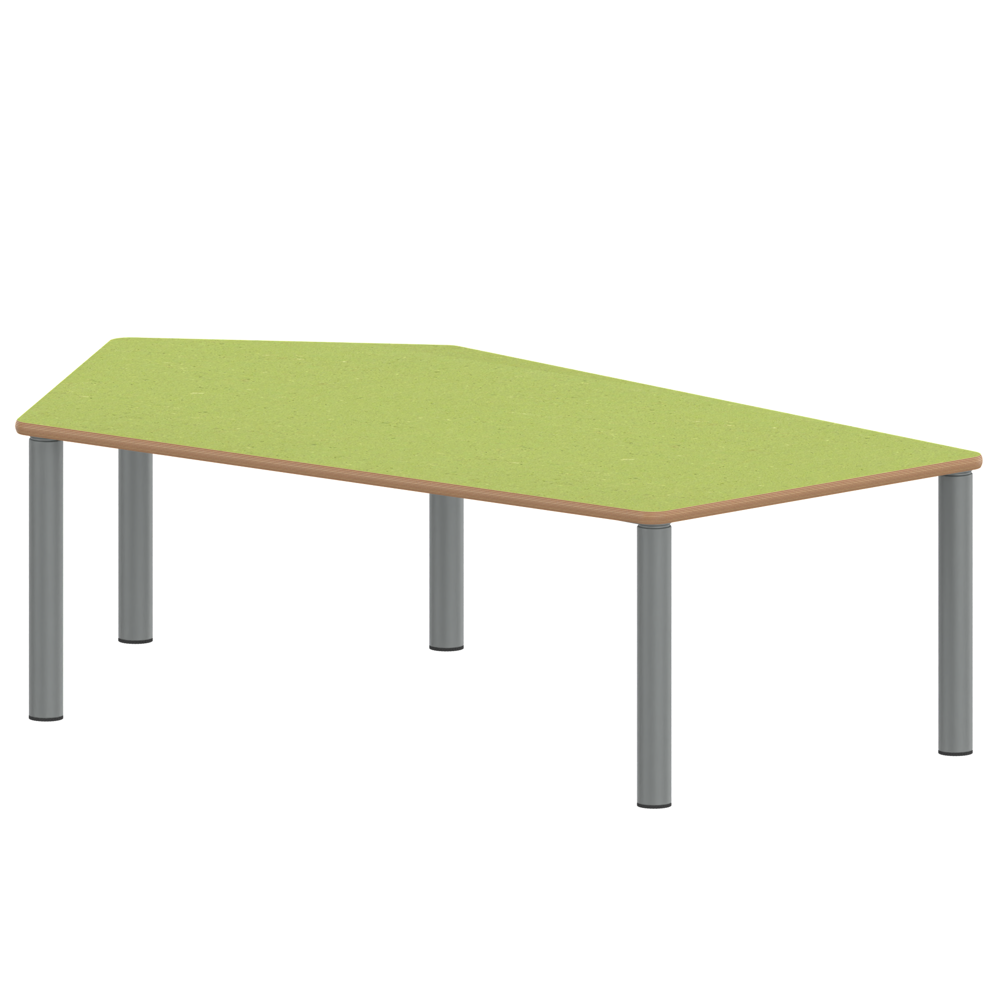 Fünfecktisch-groß, Stellfläche B/T: 185x104 cm, Höhen 25…76 cm, Stahlrohrbeine Ø 60 mm, Fußvariante: Stellfuß