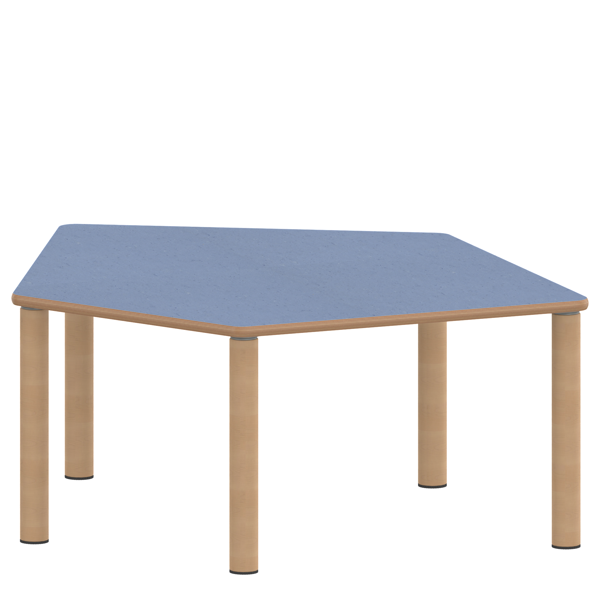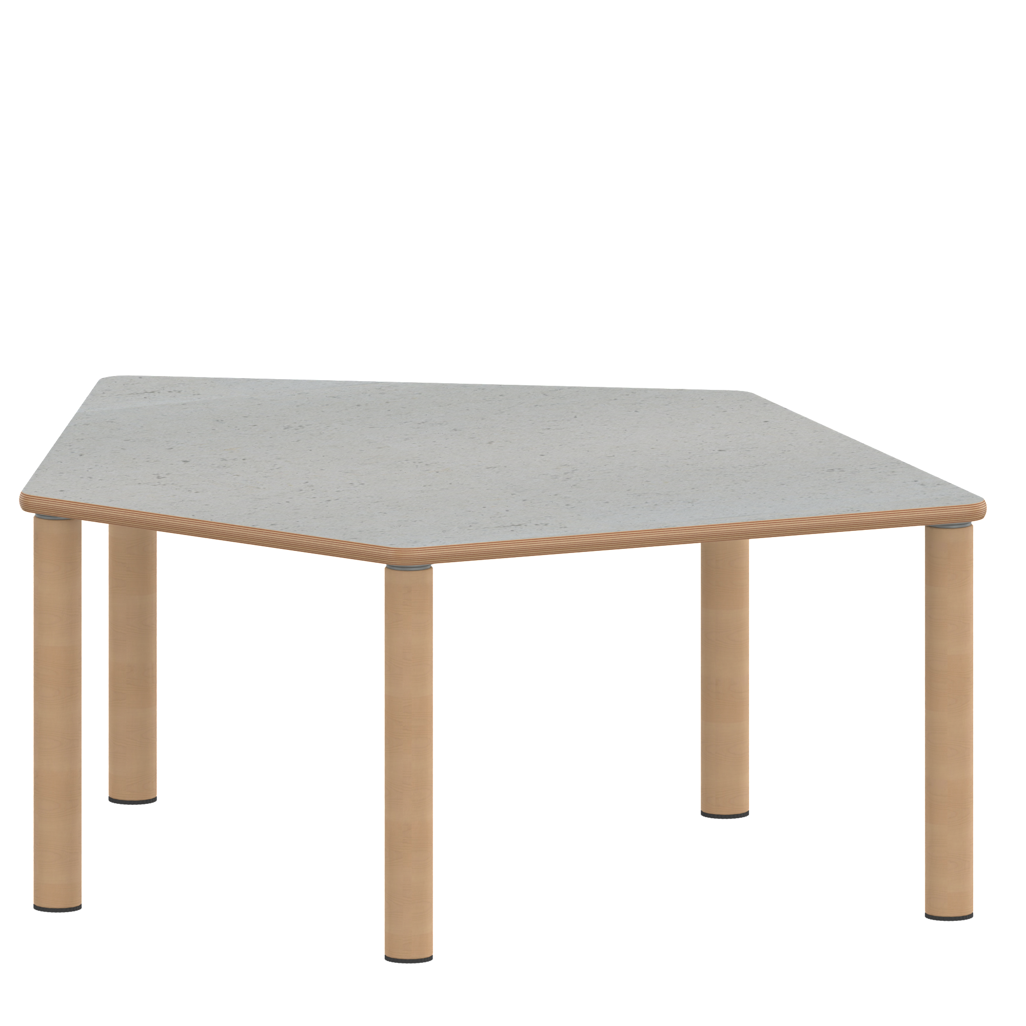 Fünfecktisch-klein, Stellfläche B/T: 121x110 cm, Höhen 25…76 cm, Massivholzbeine Ø 60 mm, Fußvariante: Stellfuß