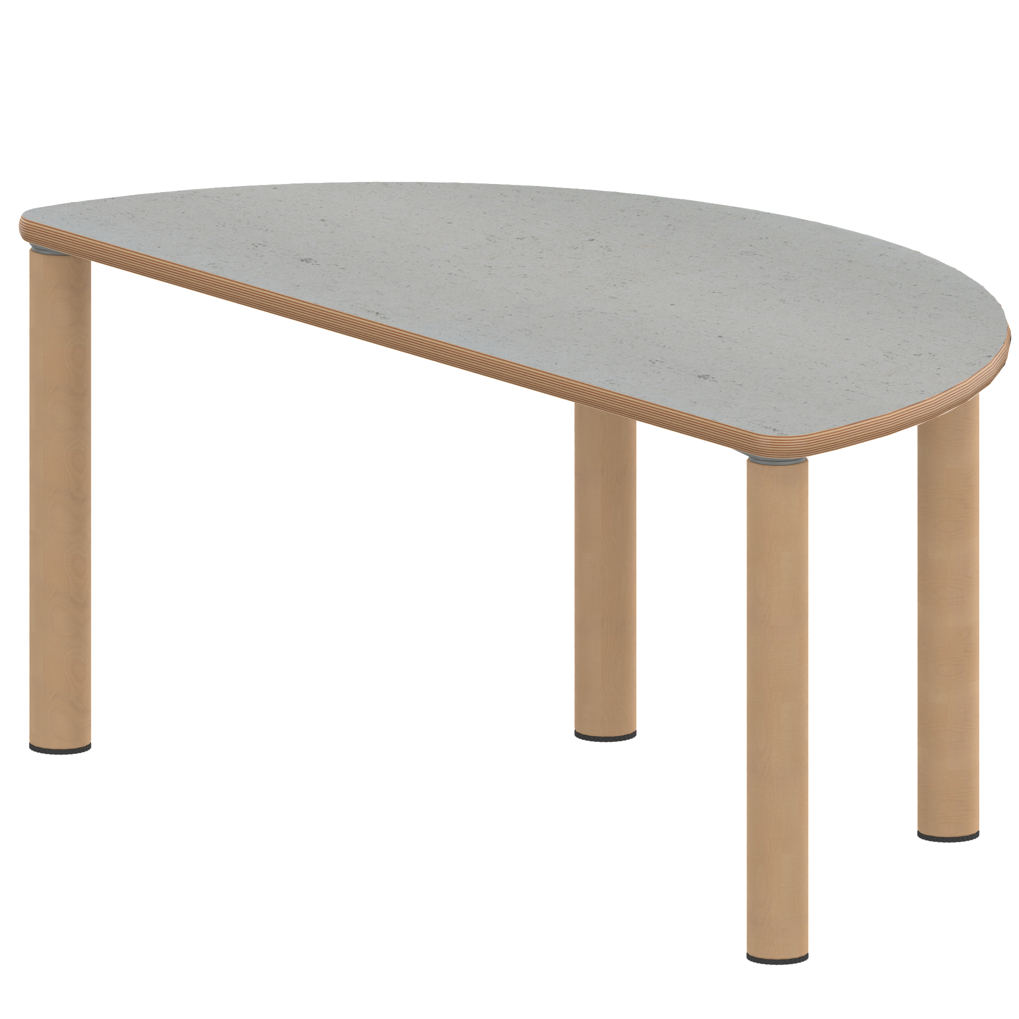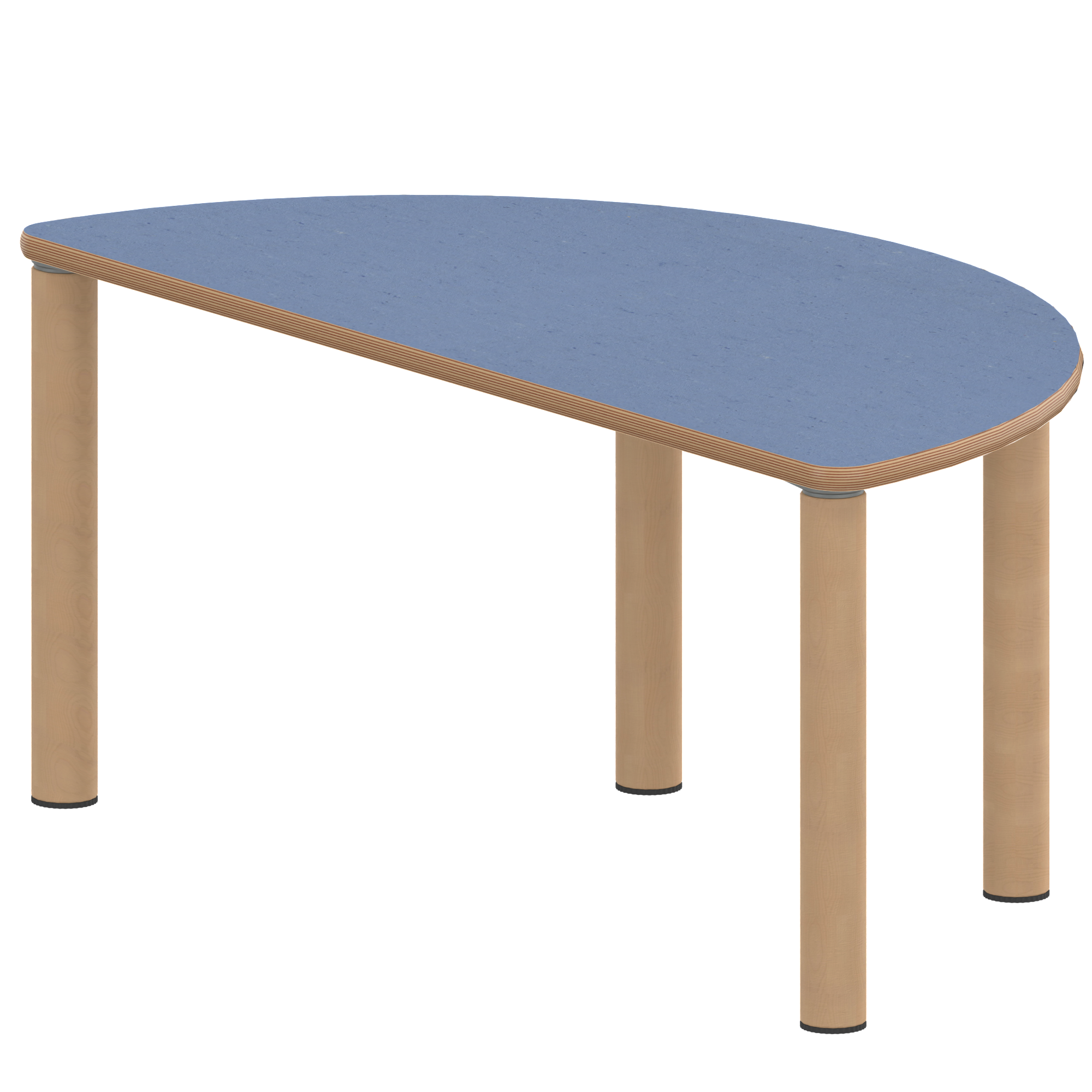 Halbrundtische, Stellfläche B/T: 120x60 cm, Höhen 25…76 cm, Massivholzbeine Ø 60 mm, Fußvariante: Stellfuß