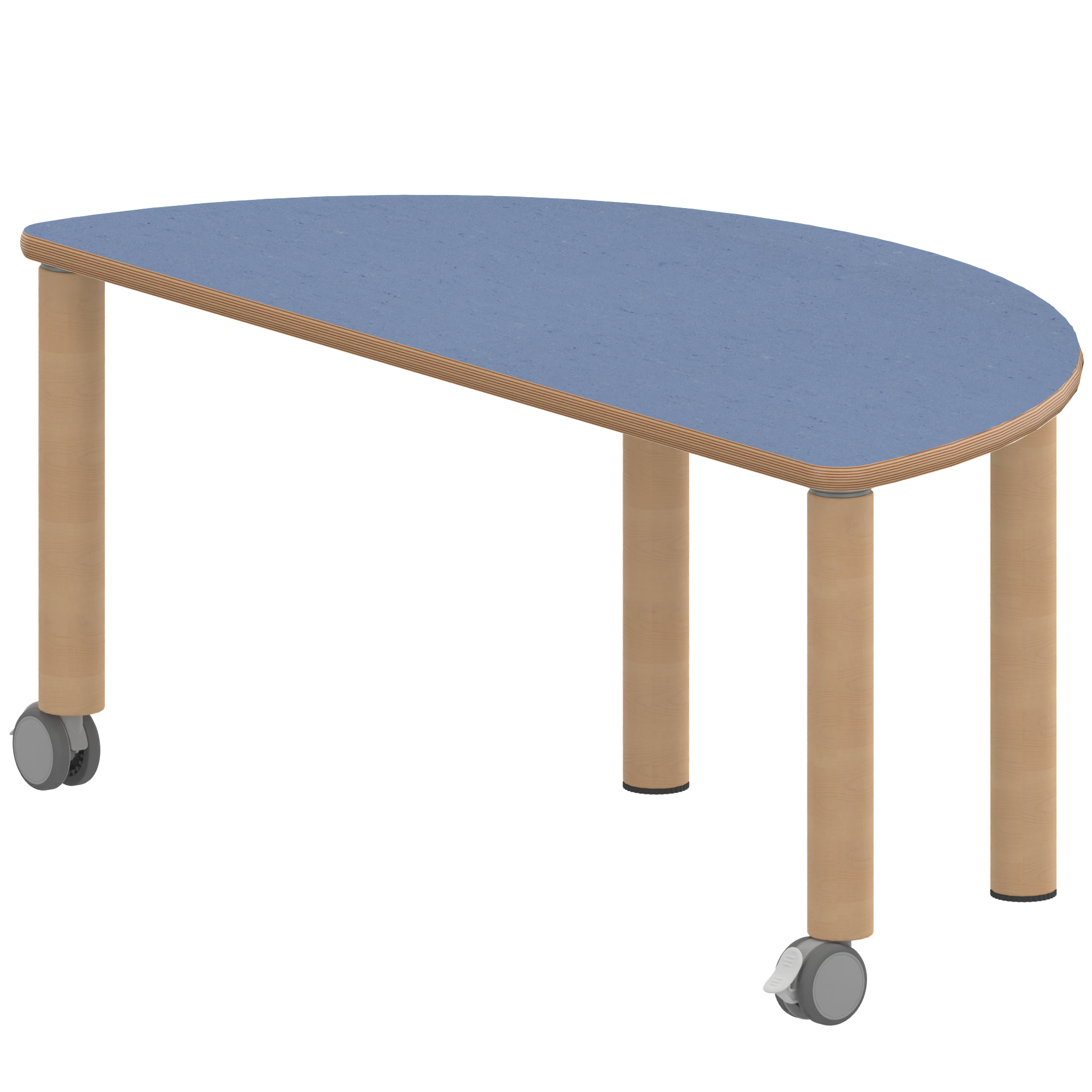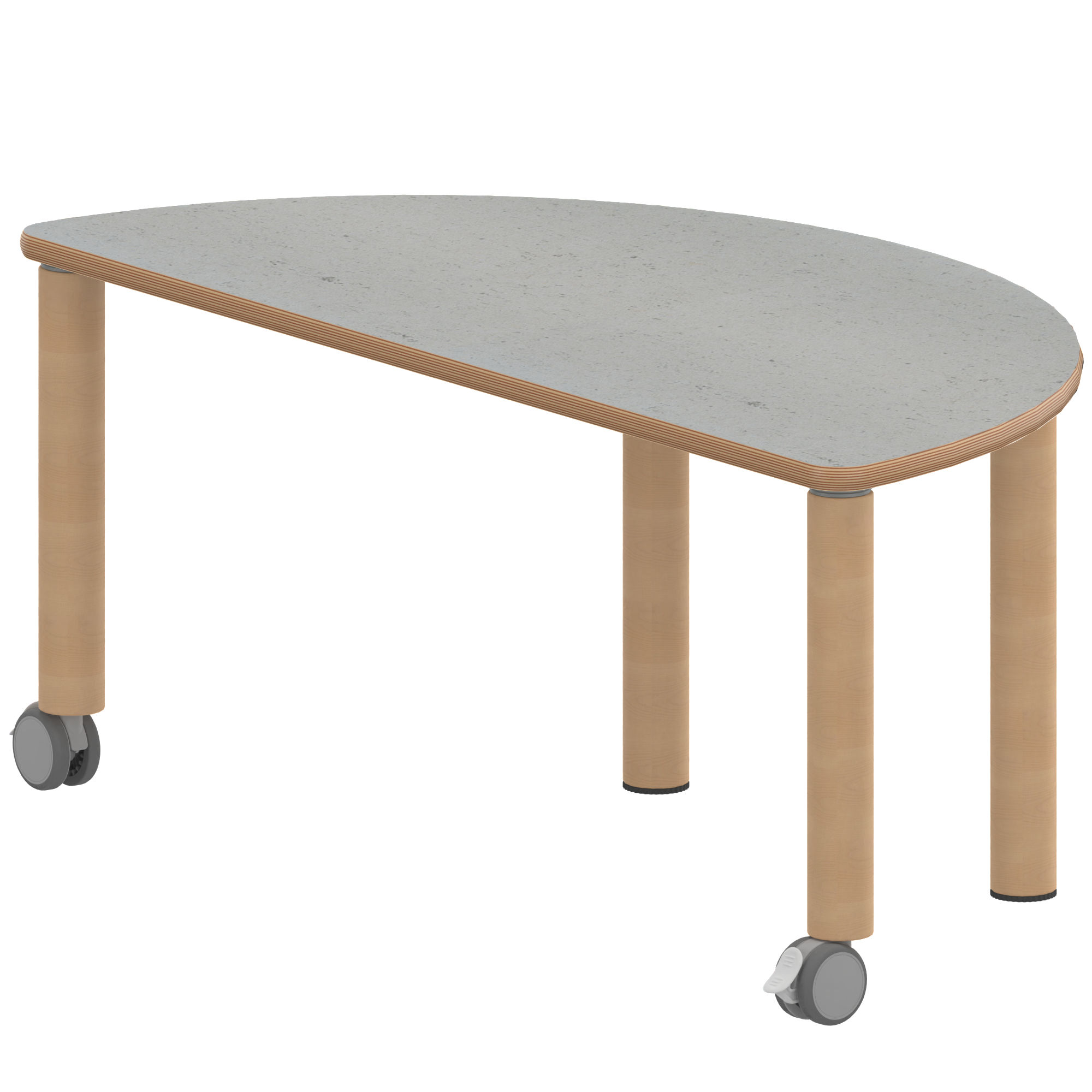 Halbrundtische, Stellfläche B/T: 120x60 cm, Höhen 25…76 cm, Massivholzbeine Ø 60 mm, Fußvariante: fahrbar
