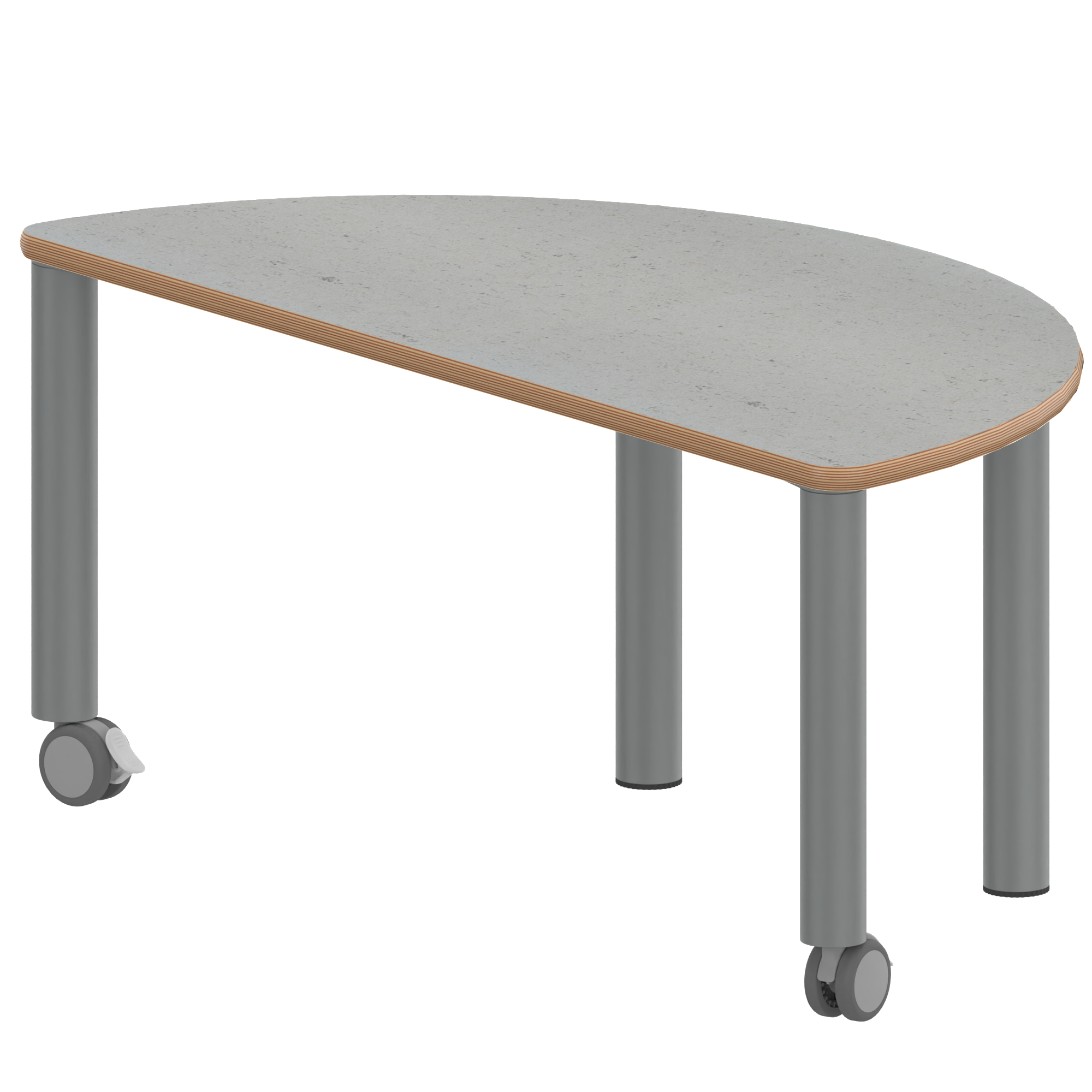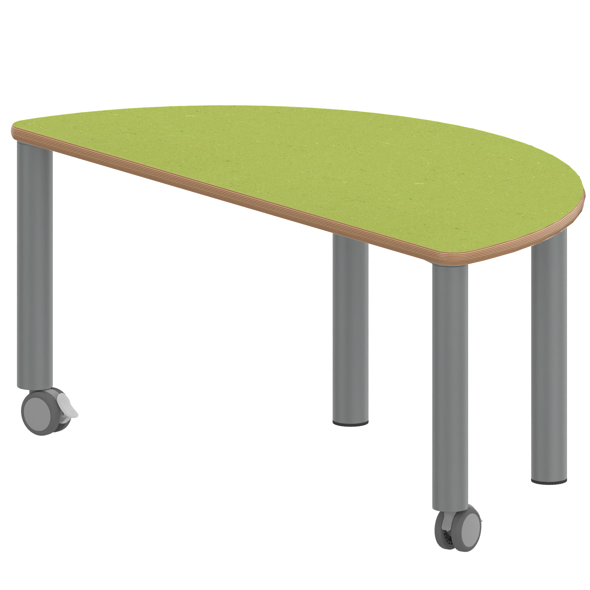 Halbrundtische, Stellfläche B/T: 120x60 cm, Höhen 25…76 cm, Stahlrohrbeine Ø 60 mm, Fußvariante: fahrbar