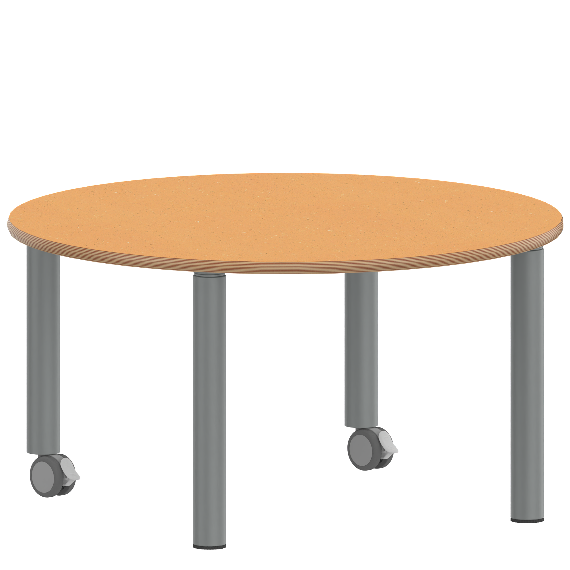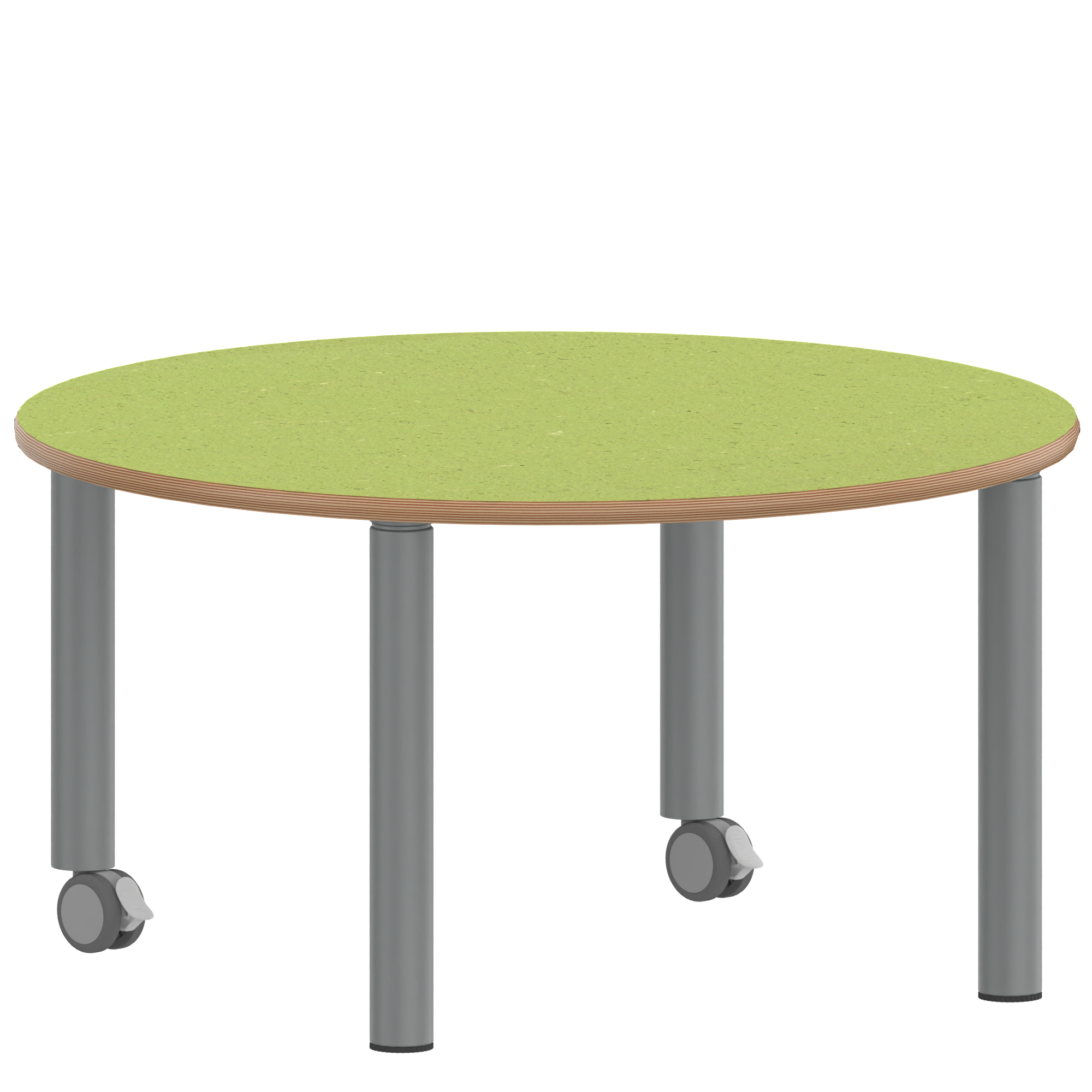 Rundtische, Durchmesser: 100 cm, Höhen 25…76 cm, Stahlrohrbeine Ø 60 mm, Fußvariante: fahrbar