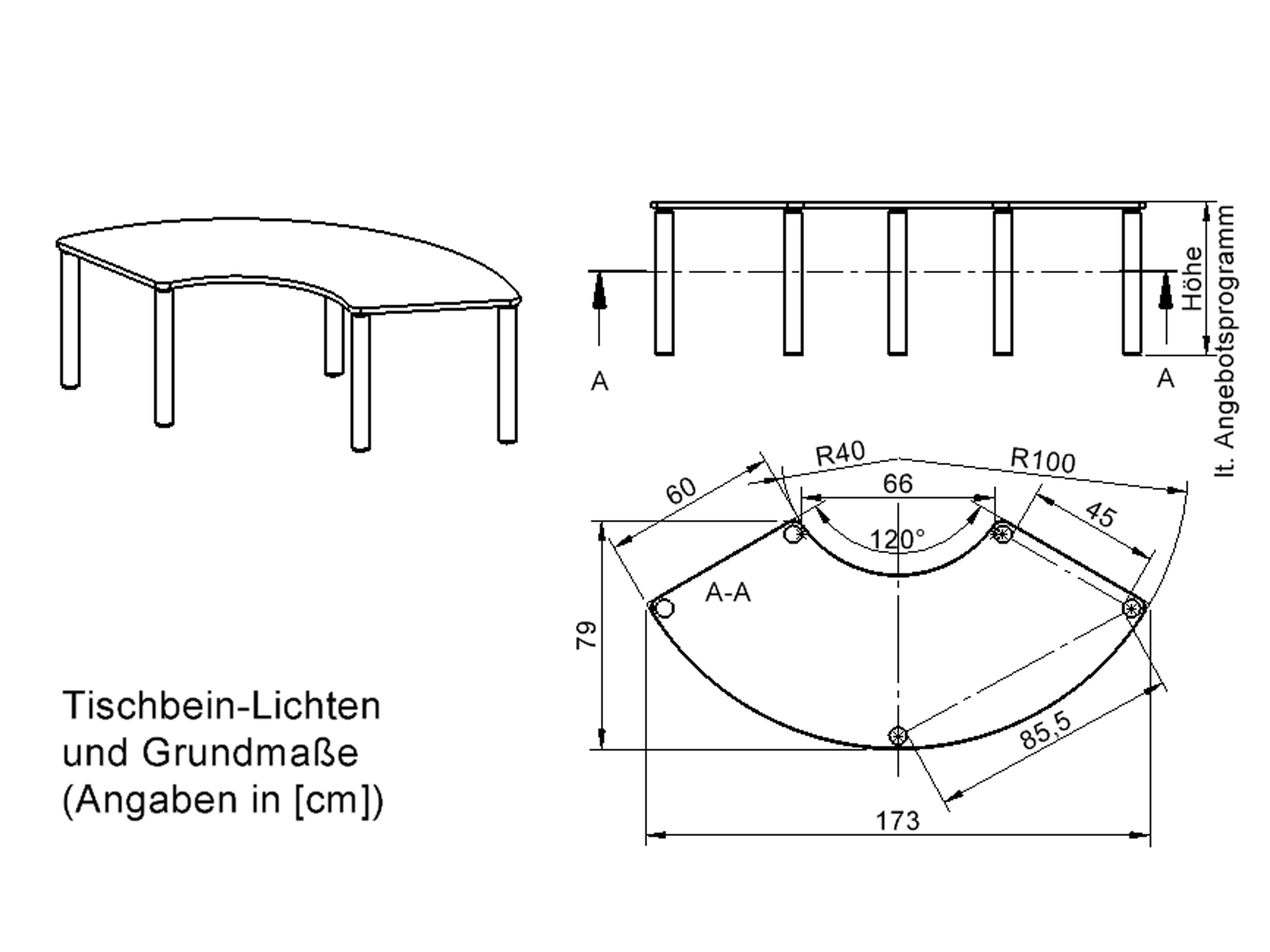 • Drittelkreis-Tischplatte