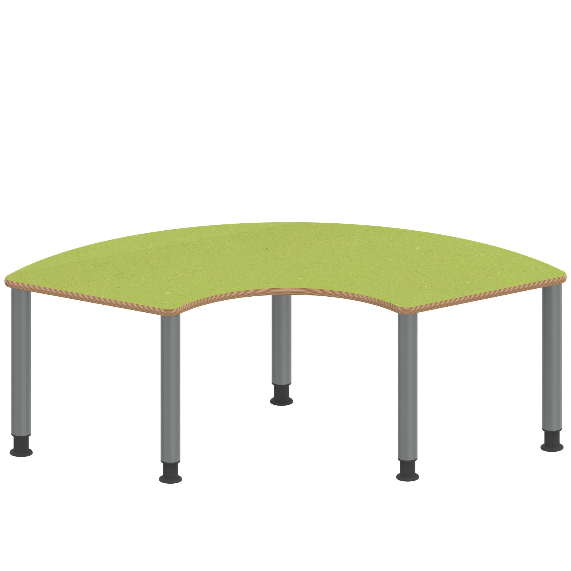 Drittelkreistische, Stellfläche B/T: 173x80 cm, Höhen 41…76 cm, Stahlrohrbeine Ø 60 mm, Fußvariante: höhenverstellbar