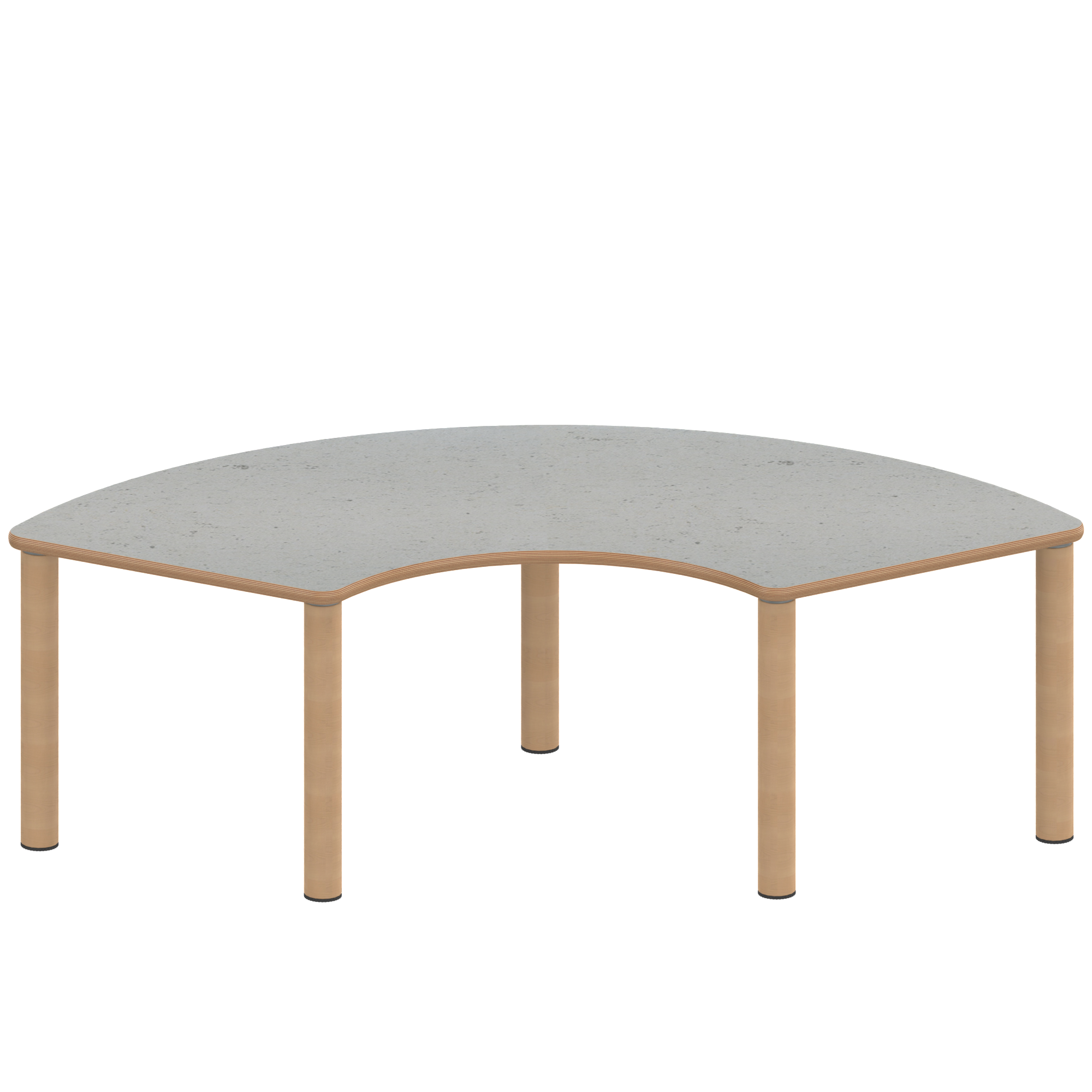 Drittelkreisförmige Tischplatte: 173 x 80 cm, Tischhöhe 76 cm, Tischbeine aus Massivholz Ø 60 mm. Die Holzoberfläche ist mehrfach lackiert. Der Tisch ist mit der Tischfußvariante ''Stellfuß'' zum Ausgleich von Bodenunebenheiten ausgestattet. Der Drittelkreis-Tisch mit dem Außendurchmesser 200 cm und Innen-Ø 80 cm steht auf 5 Beinen. Für die Planung von Stellkombinationen: die 2 geraden Anstellseiten sind je 60 cm lang.