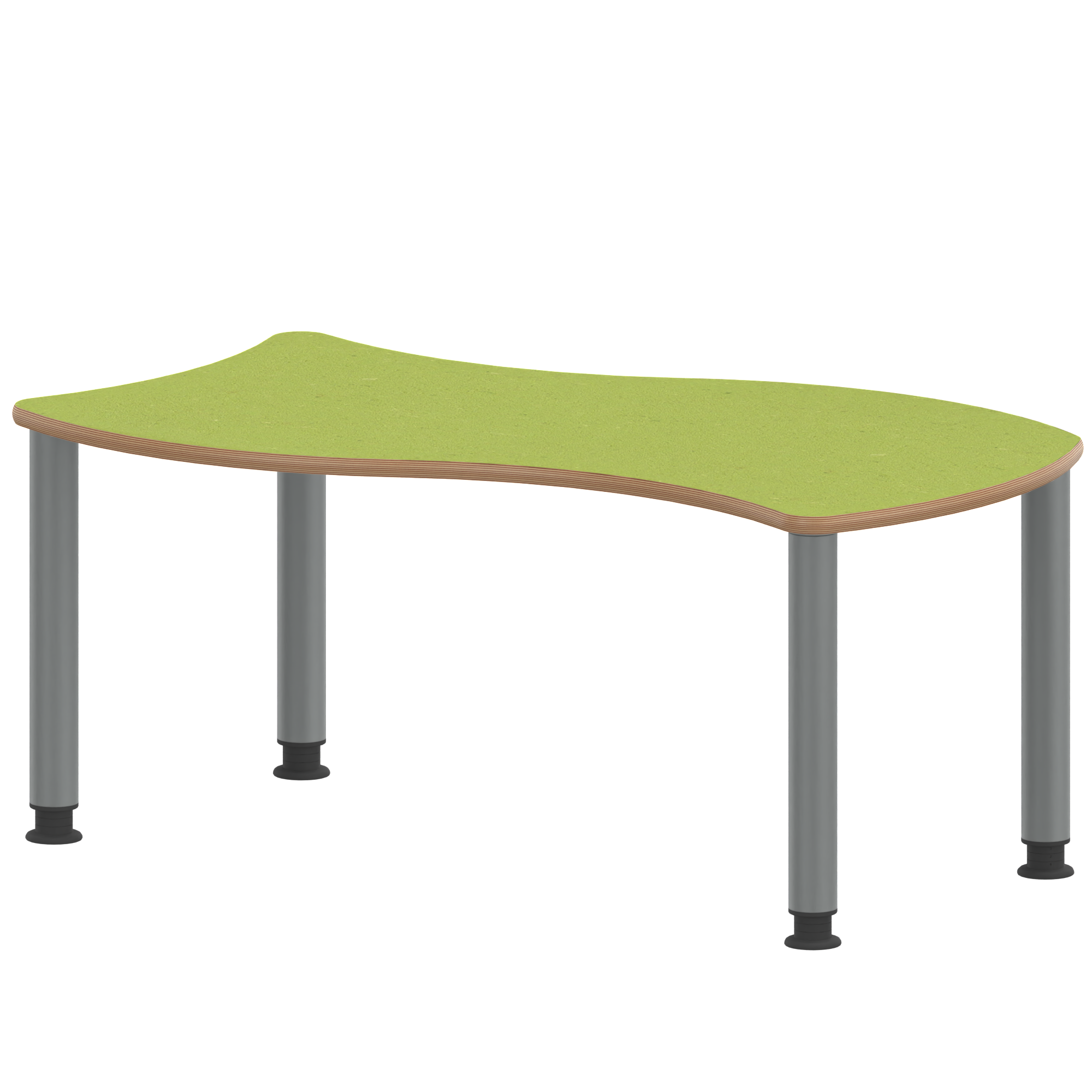 Die Tischplatte besitzt eine sehr strapazierfähige und pflegeleichte Oberfläche mit Linoleumbelag, die geräuschdämmend, chemikalienbeständig und antibakteriell ist und damit gut sauber gehalten werden kann; die Linoleumfarbe kann aus verschiedenen Farben gewählt werden.