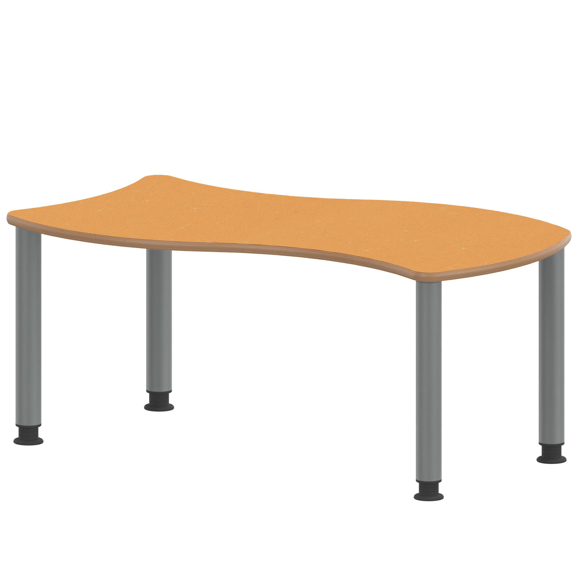 Rechteck-Wellentische, Stellfläche B/T: 126,7x76 cm, Höhen 41…76 cm, Stahlrohrbeine Ø 60 mm, Fußvariante: höhenverstellbar