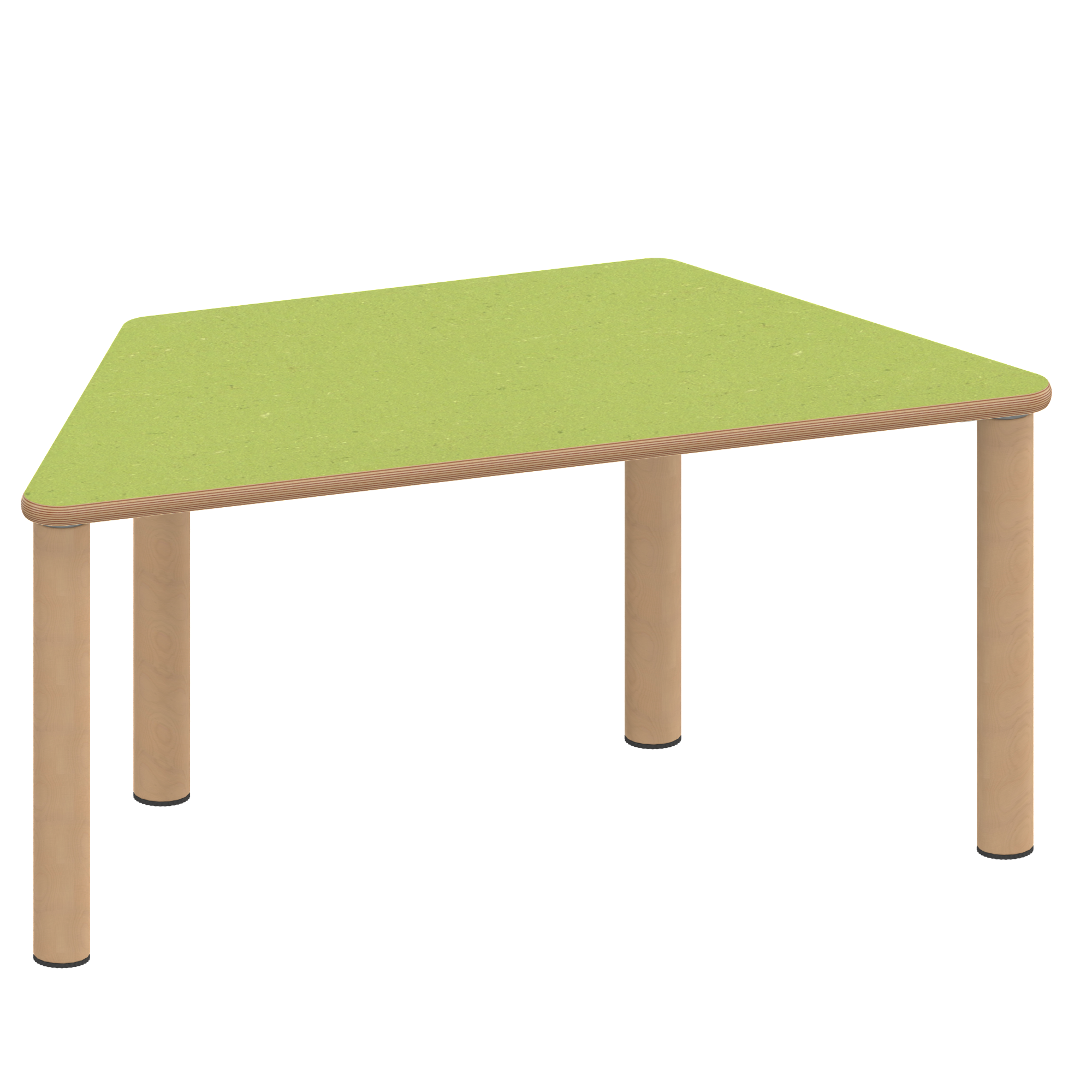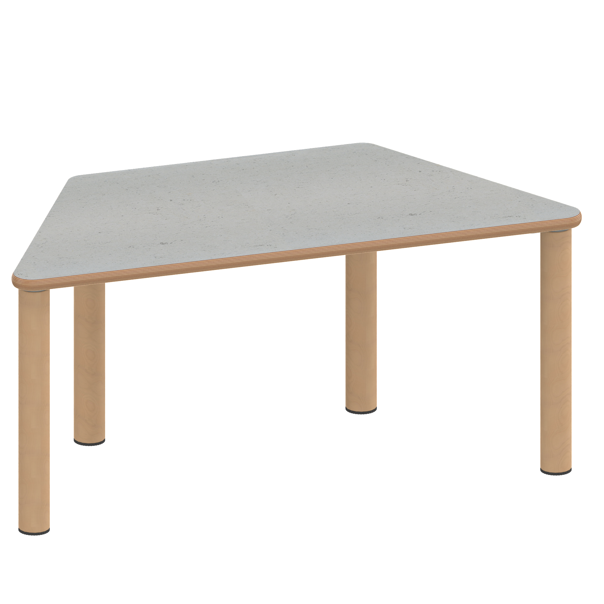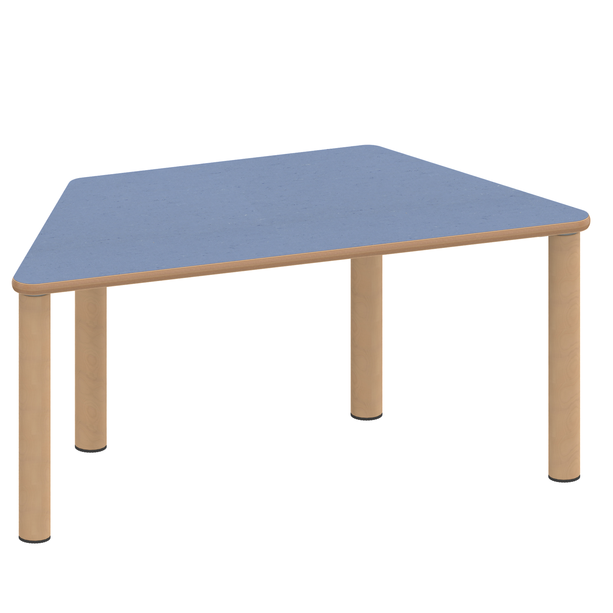 Trapez-Tische, Maße B/T: 140x70 bzw. 120x60 cm, Höhen 25…76 cm, Massivholzbeine Ø 60 mm, Fußvariante: Stellfuß