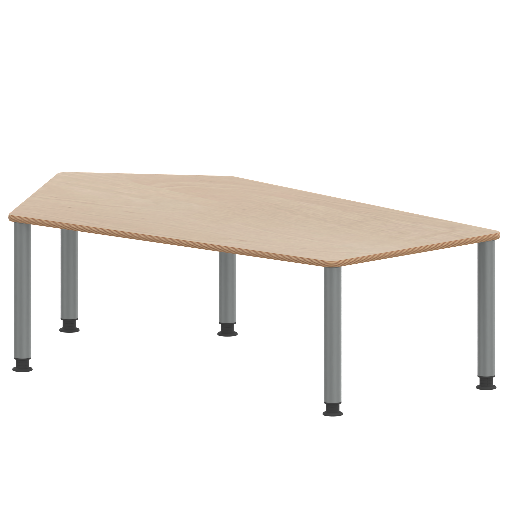 Fünfecktisch-groß, Stellfläche B/T: 185x104 cm, Höhen 41…76 cm, Stahlrohrbeine Ø 60 mm, Fußvariante: höhenverstellbar