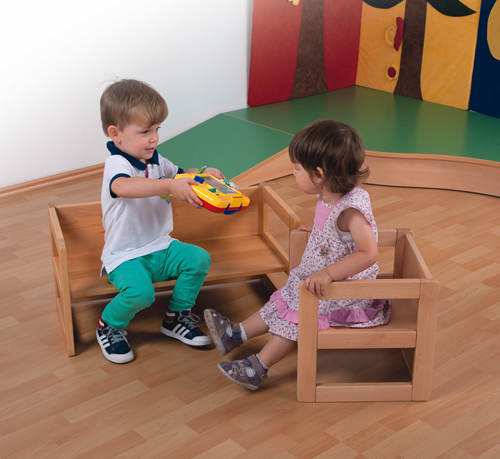 Man kann es drehen und wenden wie man will: Obwohl nur ein einziges Möbelstück, ist es mal Bank und mal Tisch, mal in dieser und dann wieder in anderer Höhe nutzbar. So können verschieden große Kinder daran Freude haben und selbst verschiedene Gestaltungsmöglichkeiten nutzen. Flexibilität pur.