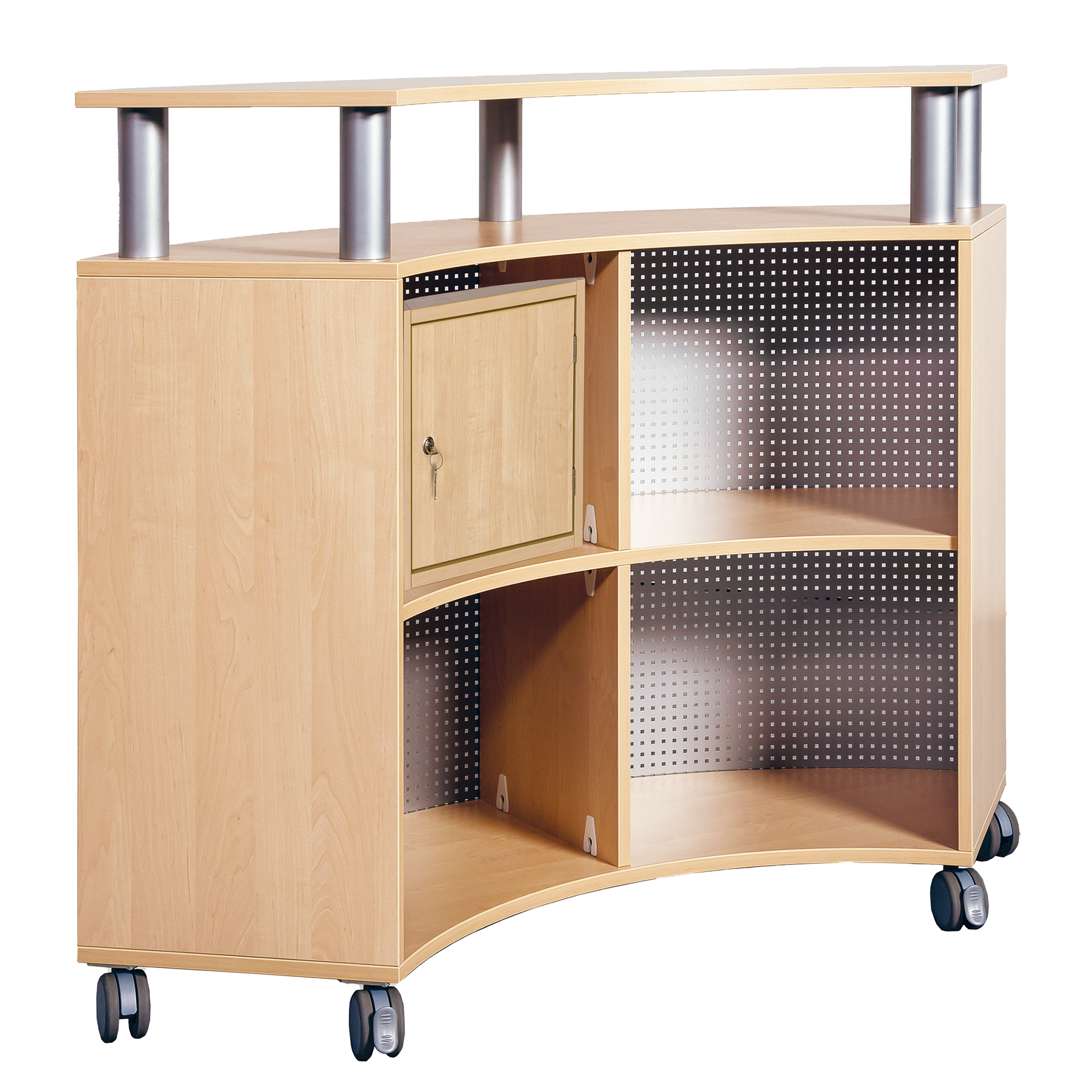 "Klein, aber oho!" Mit dem Wertfach wird der Empfangstresen funktionell ergänzt, egal, ob das Personal des Hauses durchgehend anwesend ist - oder nicht. Im Sinne der Datensicherheit können persönliche Unterlagen und ausgefüllte Formulare in der Anmeldung verbleiben, sind aber für Unbefugte nicht erreichbar: die ideale Ergänzung für den Anmeldetresen. Als Dekor ist durch die B1-Ausführung Buche festgelegt. Natürlich läßt sich das Wertfach auch in einem anderen Korpus mit B1-Eigenschaften befestigen, bitte prüfen Sie in dem Fall die zur Verfügung stehenden Maße.