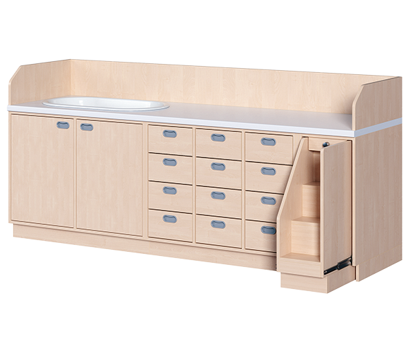 Wickelkommode, vierreihig zuzüglich Badewanne