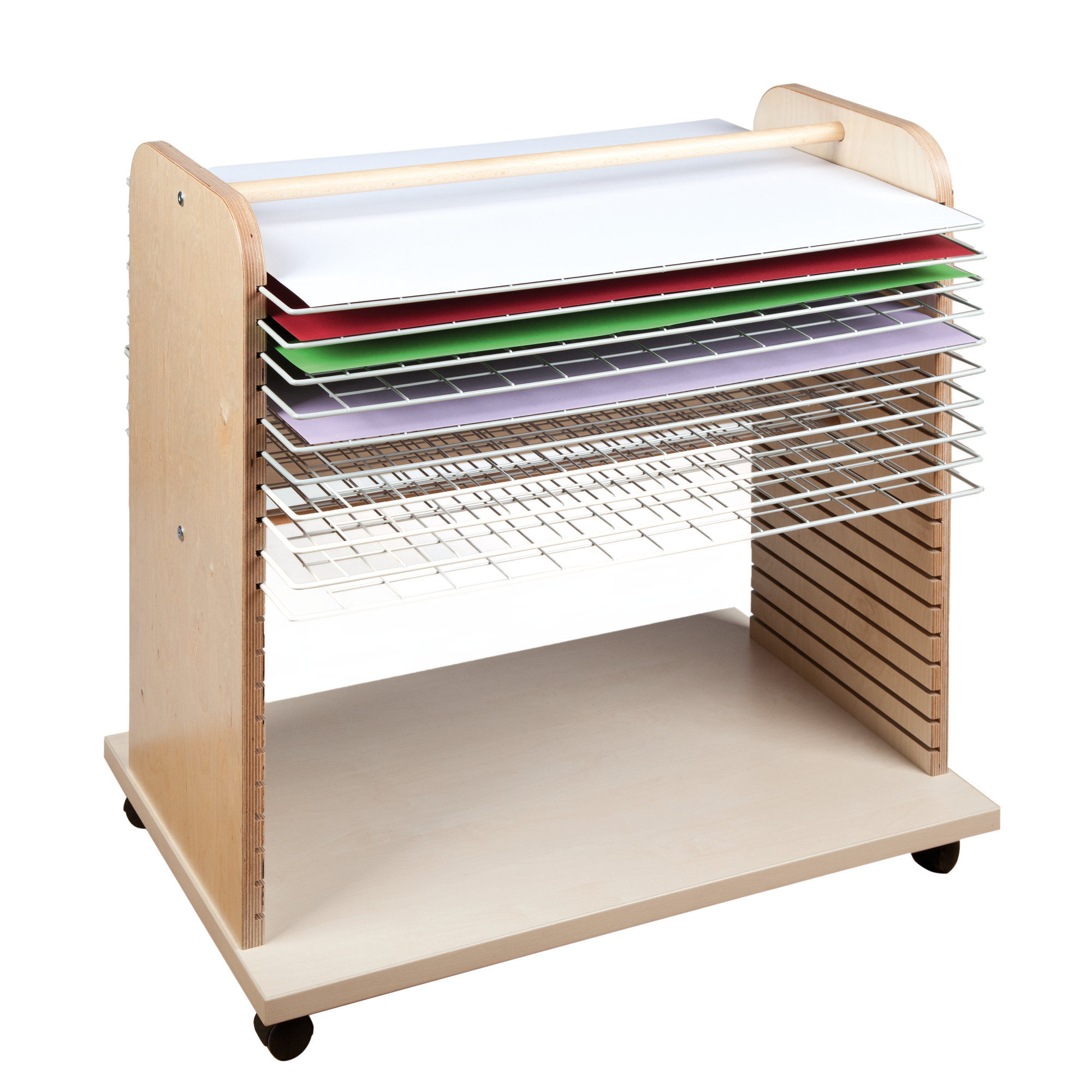 Da im Kunstraum schon mal etwas Chaos entstehen kann, ist es wichtig, nicht den Überblick zu verlieren. Unsere Kunstwägen bieten nicht nur Ablage, sondern auch Ordnungsgrundlage und verschaffen Ihnen so die Übersicht über Ihre Schüler und deren Werke.