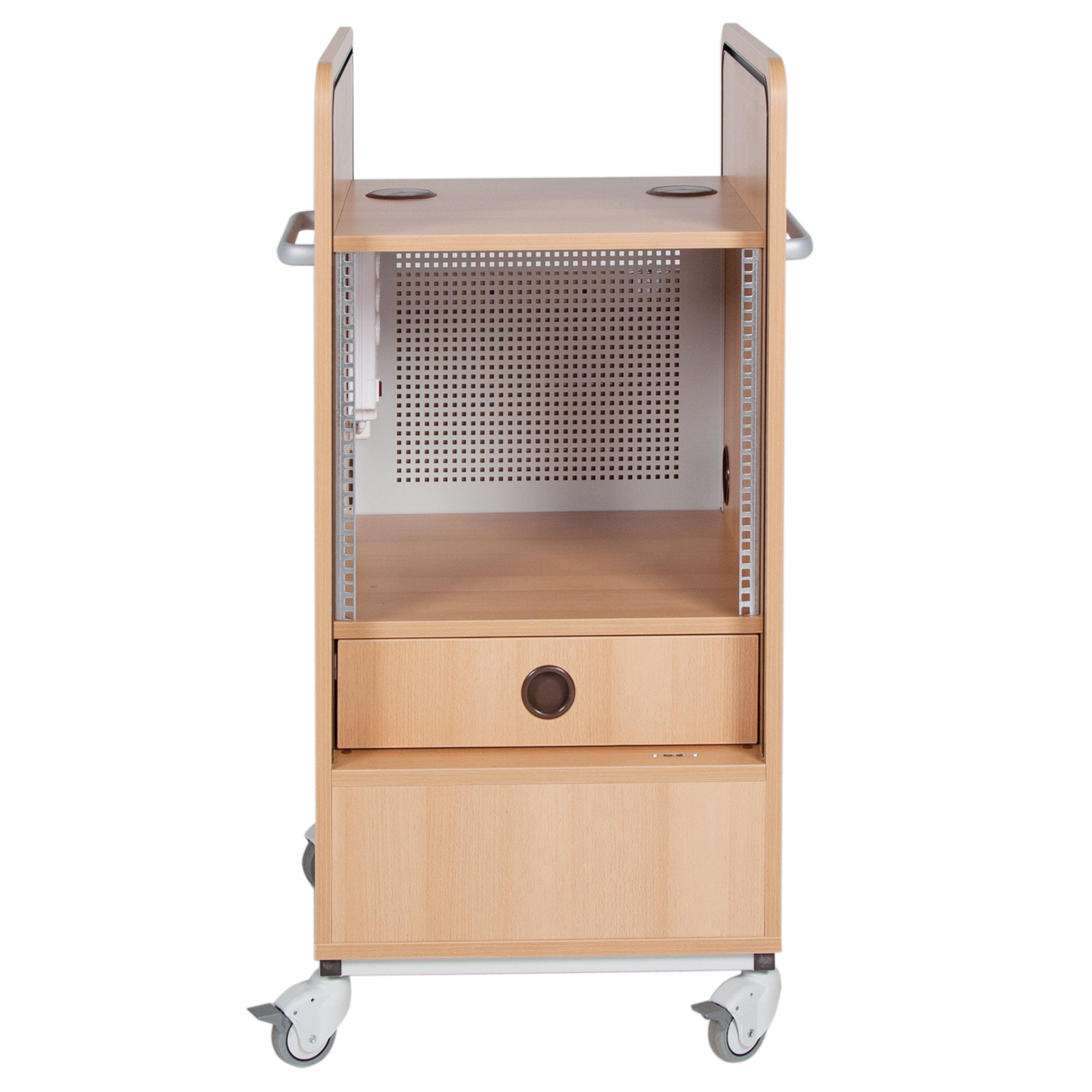 Unsere Computerschränke mit abschließbaren Türen sind die perfekte Lösung für jeden ordentlichen IT- Bereich. Die Fächer bieten genug Platz für Notebooks und dergleichen während die Mehrfachsteckdosenleiste ein gleichzeitiges Laden multipler Geräte ermöglicht. Durch die Lüftungsschlitze können die Rechner auch im Schrank in Betrieb bleiben, ohne zu überhitzen.